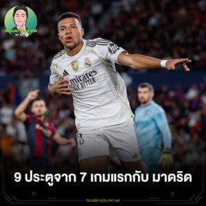 คีลิยัน เอ็มบั๊ปเป้ ยิงไปแล้ว 9 ประตูจาก 7 เกมแรกกับ เรอัล มาดริด ฤดูกาลนี้