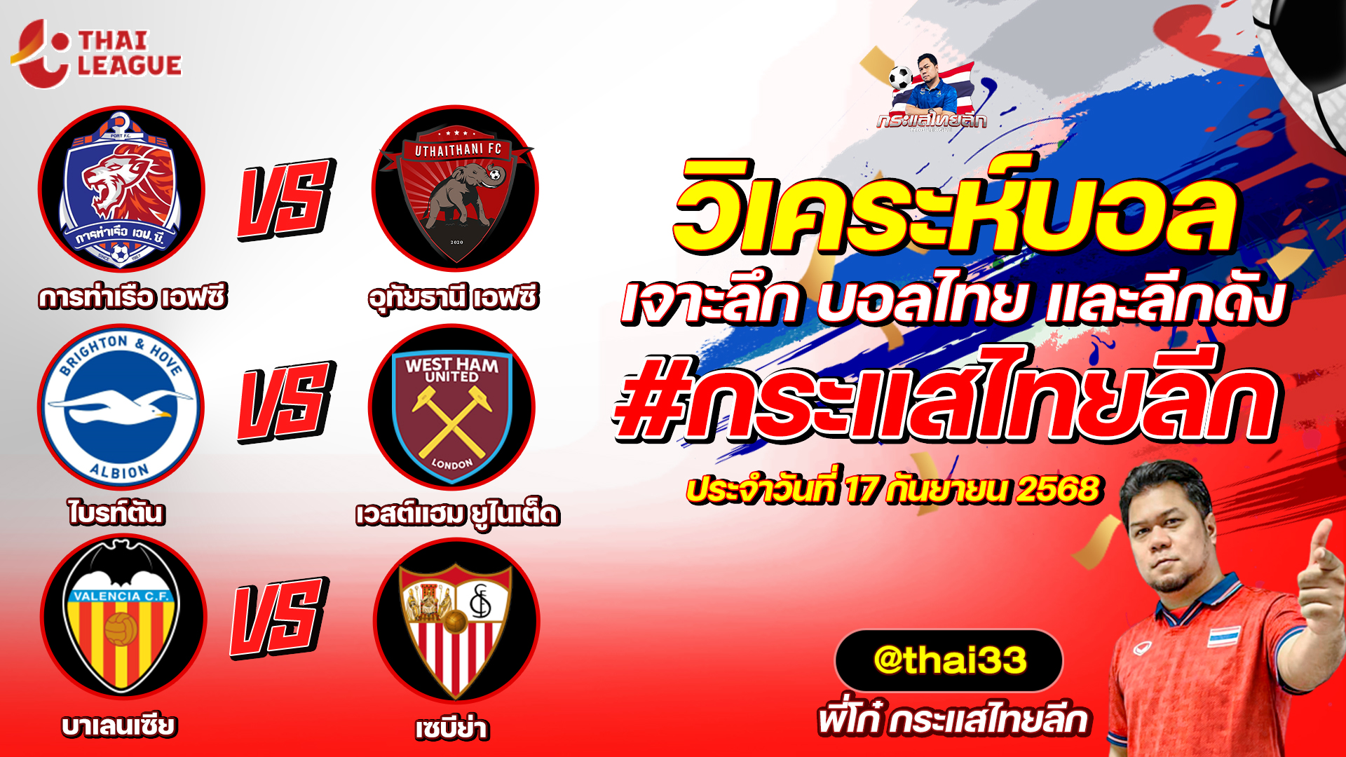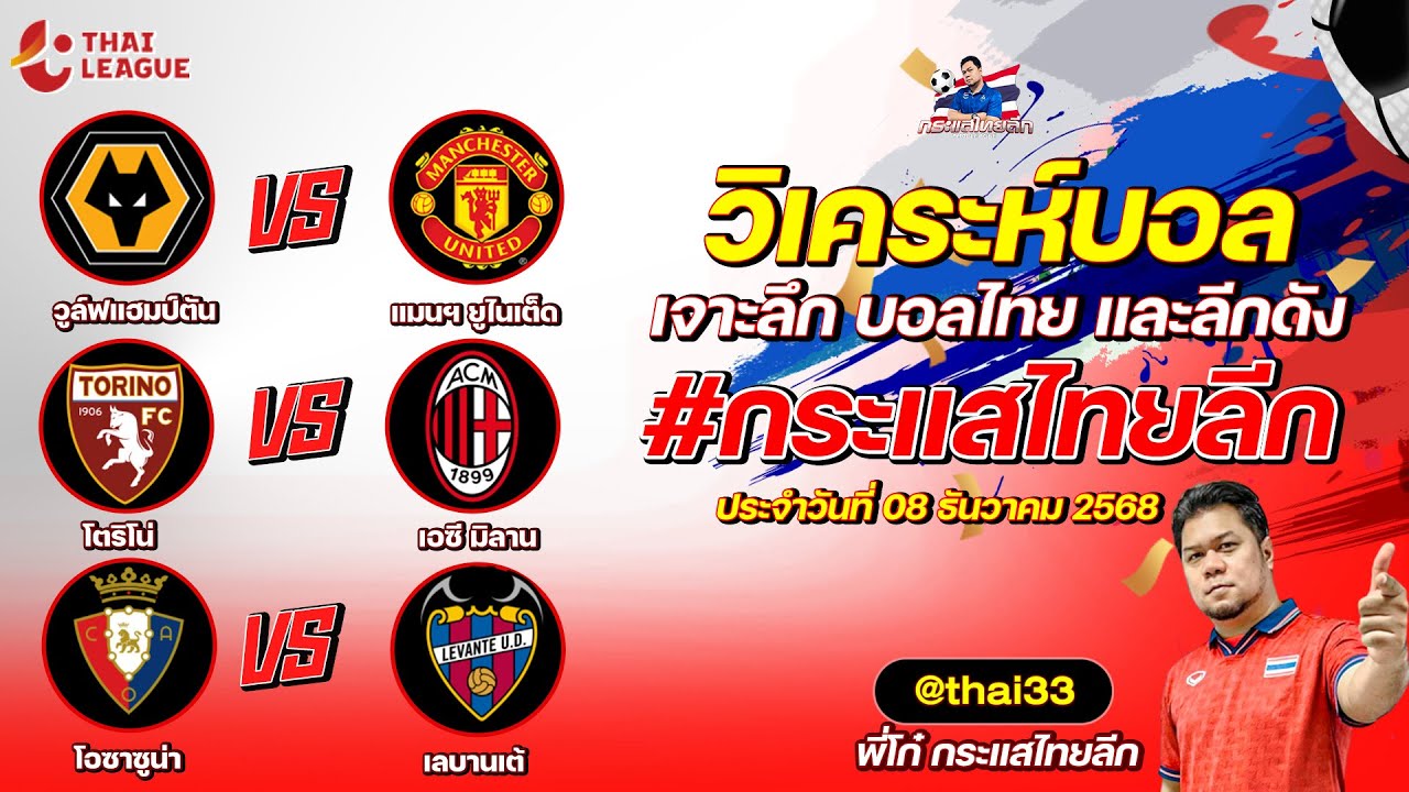 กระแสไทยลีก ทรรศนะบอล 3 คู่ ประจำวันที่ 08/12/2568 รับกระแสไทยลีก ทีเด็ดบอลวันนี้ ทีเด็ดบอลไทย ทรรศนะบอล 3 คู่ กับ พี่โก๋บอลไทย ได้ทุกวันที่ ช่อง กระแสไทยลีก ทีเด็ดบอล 3 คู๋ หน้ากล้อง | วันจันทร์ ที่ 08 ธันวาคม 2568 ▁▁▁▁▁▁▁▁▁▁▁▁▁▁▁▁▁▁▁▁▁▁▁ 00:29 | วูล์ฟแฮมป์ตัน VS แมนฯ ยูไนเต็ด 01:45 WEB ADMIN 8 ธันวาคม 2025
