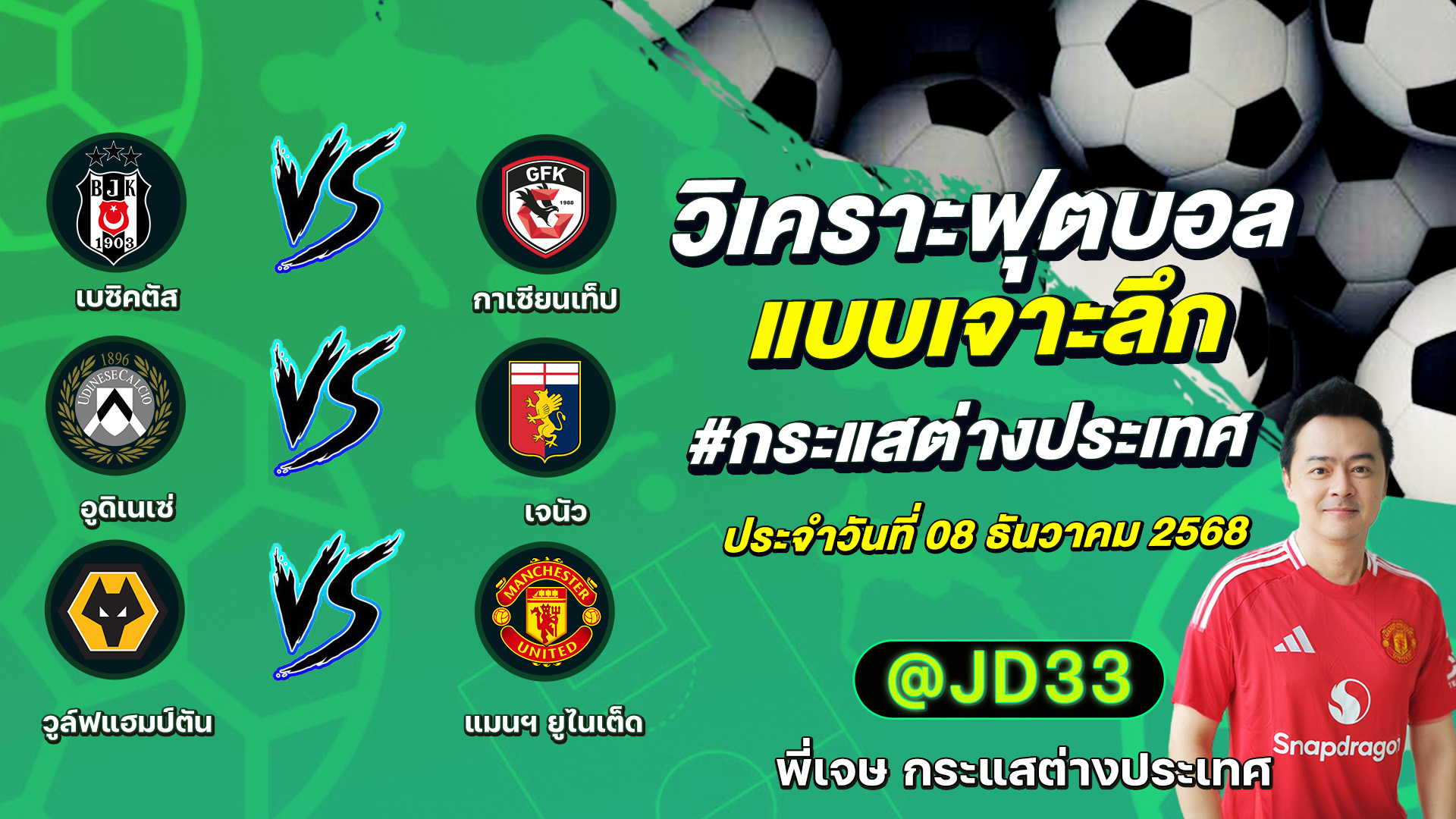 วิเคราะห์บอล กระแสต่างประเทศ 3 คู่ ประจำวันที่08/12/2568 รับ ทีเด็ดบอลวันนี้ ทีเด็ดบอลเต็ง ทรรศนะบอล 3 คู่ กับ พี่เจษ กระแสต่างประเทศ ได้ทุกวันที่นี่ที่เดียว ทีเด็ดบอล 3 คู่ หน้ากล้อง | วันจันทร์ที่ 08 ธันวาคม 2568 ▁▁▁▁▁▁▁▁▁▁▁▁▁▁▁▁▁▁▁▁▁▁▁ 00:20 | เบซิคตัส VS กาเซียนเท็ป 01:09 | อูดิเนเซ่ VS WEB ADMIN 8 ธันวาคม 2025