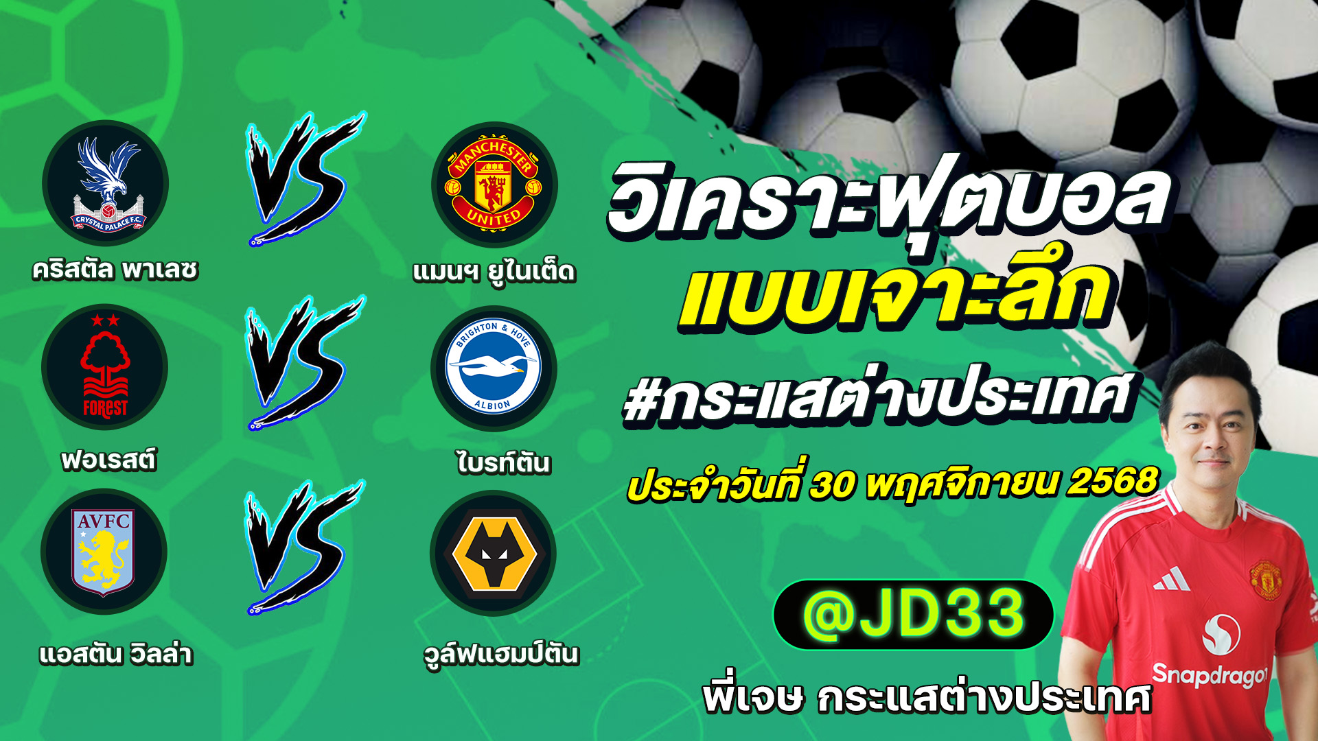 วิเคราะห์บอล กระแสต่างประเทศ 3 คู่ ประจำวันที่ 30/11/2568 รับ ทีเด็ดบอลวันนี้ ทีเด็ดบอลเต็ง ทรรศนะบอล 3 คู่ กับ พี่เจษ กระแสต่างประเทศ ได้ทุกวันที่นี่ที่เดียว ทีเด็ดบอล 3 คู่ หน้ากล้อง | วันอาทิตย์ ที่ 30 พฤศจิกายน 2568 ▁▁▁▁▁▁▁▁▁▁▁▁▁▁▁▁▁▁▁▁▁▁▁ 00:21 | คริสตัล พาเลซ VS แมนฯ ยูไนเต็ด 01:33 WEB ADMIN 30 พฤศจิกายน 2025