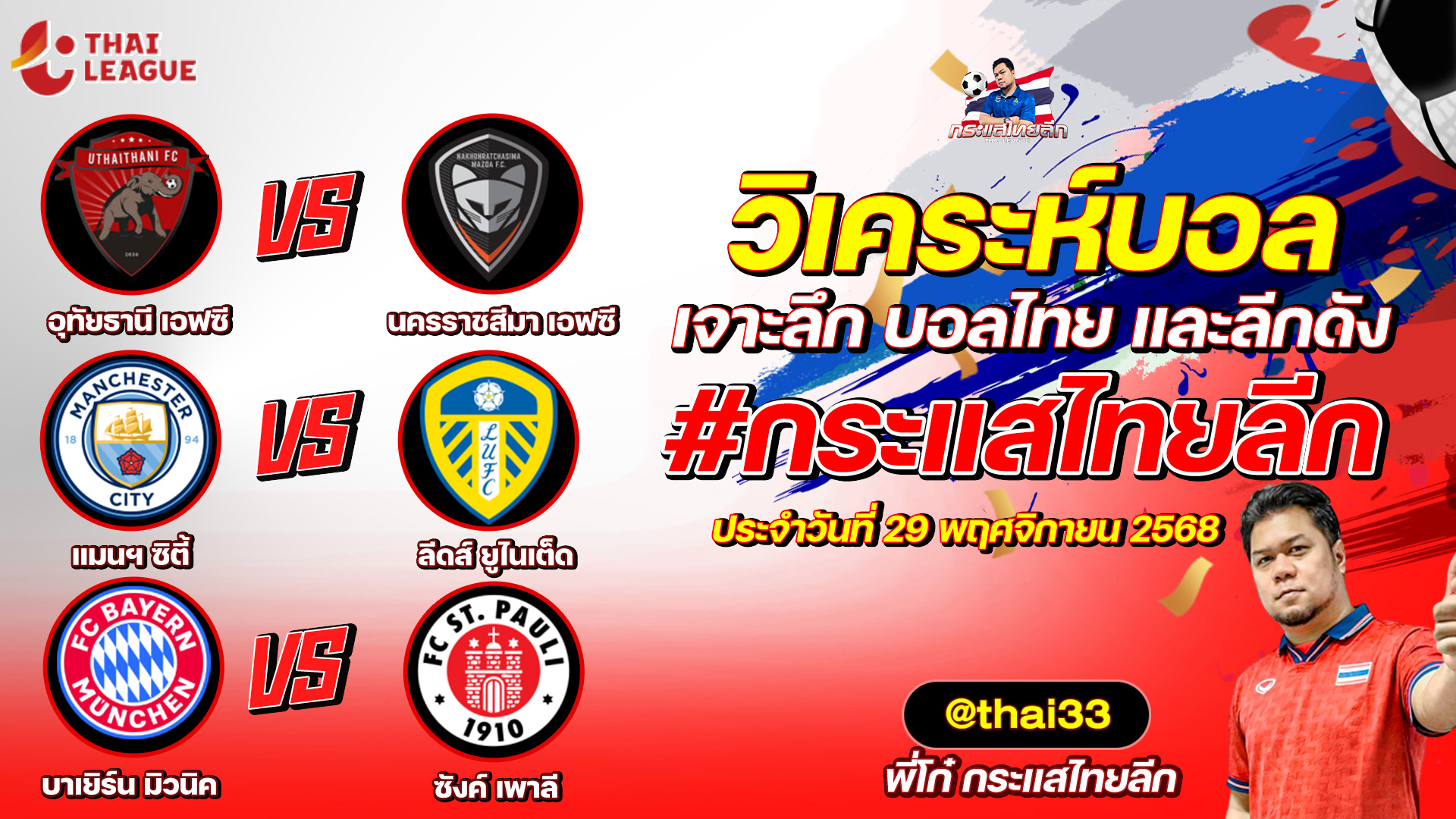 กระแสไทยลีก ทรรศนะบอล 3 คู่ ประจำวันที่ 29/11/2568 รับกระแสไทยลีก ทีเด็ดบอลวันนี้ ทีเด็ดบอลไทย ทรรศนะบอล 3 คู่ กับ พี่โก๋บอลไทย ได้ทุกวันที่ ช่อง กระแสไทยลีก ทีเด็ดบอล 3 คู๋ หน้ากล้อง | วันเสาร์ ที่ 29 พฤศจิกายน 2568 ▁▁▁▁▁▁▁▁▁▁▁▁▁▁▁▁▁▁▁▁▁▁▁ 00:40 | อุทัยธานี เอฟซี VS นครราชสีมา เอฟซี WEB ADMIN 29 พฤศจิกายน 2025