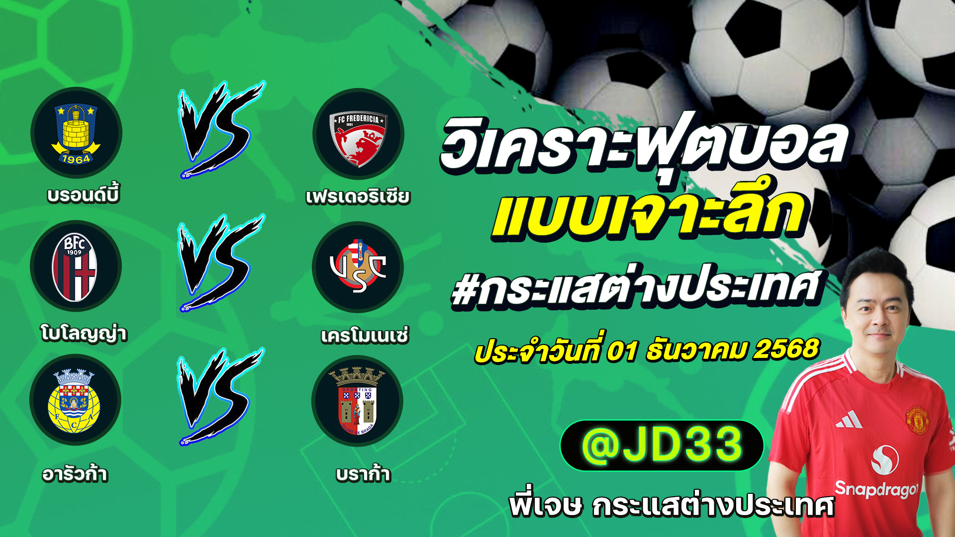 วิเคราะห์บอล กระแสต่างประเทศ 3 คู่ ประจำวันที่01/12/2568 รับ ทีเด็ดบอลวันนี้ ทีเด็ดบอลเต็ง ทรรศนะบอล 3 คู่ กับ พี่เจษ กระแสต่างประเทศ ได้ทุกวันที่นี่ที่เดียว ทีเด็ดบอล 3 คู่ หน้ากล้อง | วันจันทร์ ที่ 01 ธันวาคม 2568 ▁▁▁▁▁▁▁▁▁▁▁▁▁▁▁▁▁▁▁▁▁▁▁ 00:18 | บรอนด์บี้ VS เฟรเดอริเซีย 01:04 | โบโลญญ่า WEB ADMIN 1 ธันวาคม 2025
