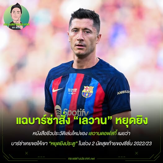 แฉบาร์ซ่าสั่ง “เลวาน” หยุดยิง – กันท่าจ่ายโบนัสให้บาเยิร์น! แฉบาร์ซ่าสั่ง “เลวาน” หยุดยิง – กันท่าจ่ายโบนัสให้บาเยิร์น!มีเรื่องสุดช็อกถูกเปิดในหนังสือชีวประวัติเล่มใหม่ของ โรเบิร์ต เลวานดอฟสกี้ เผยว่า บาร์เซโลน่าเคยขอให้เขา “หยุดยิงประตู” ในช่วง 2 นัดสุดท้ายของซีซั่น 2022/23 ตอนนั้น บาร์ซ่า การันตีแชมป์แล้ว และเลวานยิงไป 23 ลูก เหลืออีกแค่ 2 ประตูจะถึงเงื่อนไขสำคัญในสัญญาซื้อขาย… ถ้าเลวานยิงครบ 25 ประตูบาร์ซ่าต้องจ่าย โบนัส 2.5 ล้านยูโร ให้บาเยิร์นซึ่งสโมสรตอนนั้นกำลัง เงินสะพัด – WEB ADMIN 20 พฤศจิกายน 2025