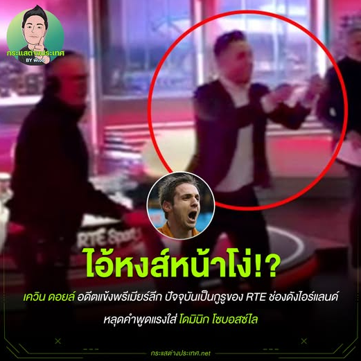 ไอ้หงส์หน้าโง่!? กูรูไอริชหลุดด่า “โซโบ” หลังโดนยักษ์เขียวยิงแซงท้ายเกม ไอ้หงส์หน้าโง่!? กูรูไอริชหลุดด่า “โซโบ” หลังโดนยักษ์เขียวยิงแซงท้ายเกม เกิดดราม่าหลังเกมเดือด! เมื่อ เควิน ดอยล์ อดีตแข้งพรีเมียร์ลีก–ปัจจุบันเป็นกูรูของ RTE ช่องดังไอร์แลนด์—หลุดคำพูดแรงใส่ โดมินิก โซบอสซ์ไล หลังทีมชาติไอร์แลนด์บุกชนะฮังการี 3-2 ในช่วงวินาทีสุดท้าย คว้าตั๋วเพลย์ออฟฟุตบอลโลกแบบสุดมันส์ จังหวะประตูชัยของ ทรอย แพร์ร็อตต์ ทำให้ไอร์แลนด์ทั้งประเทศแทบระเบิดความดีใจ ไม่เว้นแม้แต่ดอยล์ที่ดีใจจนลุกวิ่งรอบสตูดิโอแบบไม่แคร์กล้อง แต่ไฮไลต์คือหลังเกม เขาถูกจับภาพได้ขณะตะโกนออกมาว่า… “โดนซะ! ไอ้ลิเวอร์พูลหน้าโง่เอ้ย!” พร้อมชี้นิ้วไปทางจอที่มีภาพโซบอสซ์ไลกำลังถูกรีเพลย์อยู่ จนต้องรีบหันไปขอโทษ ดีทมาร์ ฮามันน์ WEB ADMIN 18 พฤศจิกายน 2025