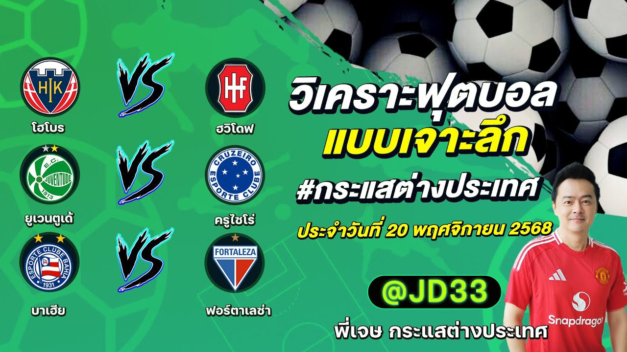 วิเคราะห์บอล กระแสต่างประเทศ 3 คู่ ประจำวันที่ 20/11/2568 รับ ทีเด็ดบอลวันนี้ ทีเด็ดบอลเต็ง ทรรศนะบอล 3 คู่ กับ พี่เจษ กระแสต่างประเทศ ได้ทุกวันที่นี่ที่เดียว ทีเด็ดบอล 3 คู่ หน้ากล้อง | วันพฤหัสบดี ที่ 20 พฤศจิกายน 2568 ▁▁▁▁▁▁▁▁▁▁▁▁▁▁▁▁▁▁▁▁▁▁▁ 00:22 | โฮโบร VS ฮวิโดฟ 01:27 | ยูเวนตูเด้ WEB ADMIN 20 พฤศจิกายน 2025
