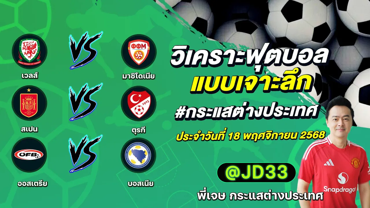 วิเคราะห์บอล กระแสต่างประเทศ 3 คู่ ประจำวันที่ 18/11/2568 รับ ทีเด็ดบอลวันนี้ ทีเด็ดบอลเต็ง ทรรศนะบอล 3 คู่ กับ พี่เจษ กระแสต่างประเทศ ได้ทุกวันที่นี่ที่เดียว ทีเด็ดบอล 3 คู่ หน้ากล้อง | วันอังคาร ที่ 18 พฤศจิกายน 2568 ▁▁▁▁▁▁▁▁▁▁▁▁▁▁▁▁▁▁▁▁▁▁▁ 00:23 | เวลส์ VS มาซิโดเนีย 01:32 | สเปน VS WEB ADMIN 18 พฤศจิกายน 2025