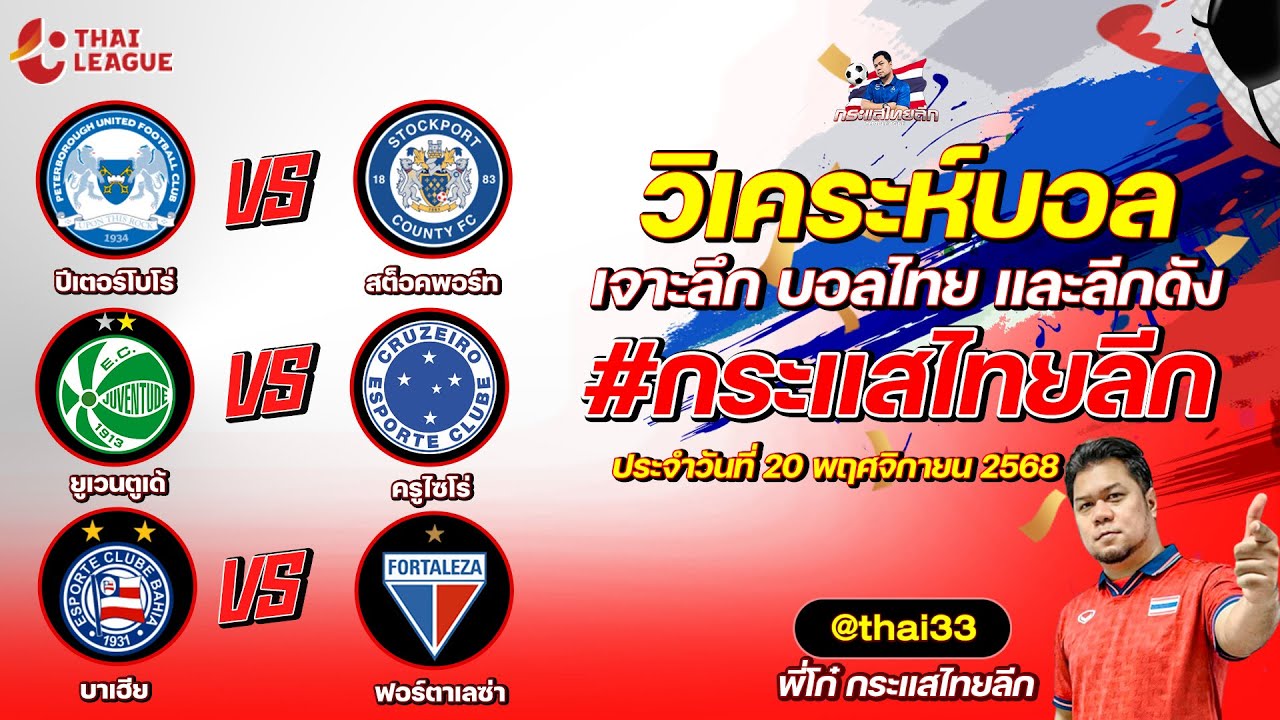 กระแสไทยลีก ทรรศนะบอล 3 คู่ ประจำวันที่ 20/11/2568 รับกระแสไทยลีก ทีเด็ดบอลวันนี้ ทีเด็ดบอลไทย ทรรศนะบอล 3 คู่ กับ พี่โก๋บอลไทย ได้ทุกวันที่ ช่อง กระแสไทยลีก ทีเด็ดบอล 3 คู๋ หน้ากล้อง | วันพฤหัสบดี ที่ 20 พฤศจิกายน 2568 ▁▁▁▁▁▁▁▁▁▁▁▁▁▁▁▁▁▁▁▁▁▁▁ 00:27 | ปีเตอร์โบโร่ VS สต็อคพอร์ท 01:49 | WEB ADMIN 20 พฤศจิกายน 2025
