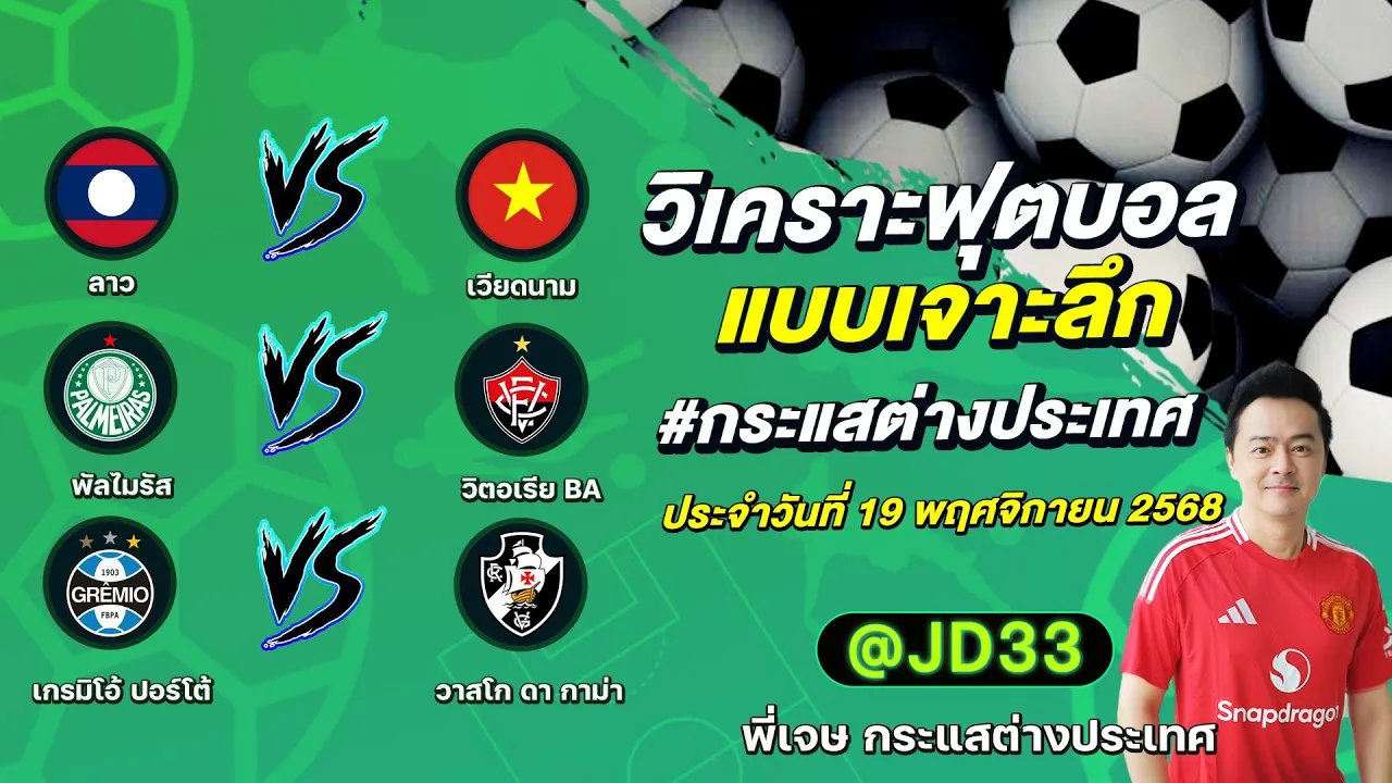 วิเคราะห์บอล กระแสต่างประเทศ 3 คู่ ประจำวันที่ 19/11/2568 รับ ทีเด็ดบอลวันนี้ ทีเด็ดบอลเต็ง ทรรศนะบอล 3 คู่ กับ พี่เจษ กระแสต่างประเทศ ได้ทุกวันที่นี่ที่เดียว ทีเด็ดบอล 3 คู่ หน้ากล้อง | วันพุธ ที่ 19 พฤศจิกายน 2568 ▁▁▁▁▁▁▁▁▁▁▁▁▁▁▁▁▁▁▁▁▁▁▁ 00:22 | ลาว VS เวียดนาม 01:27 | พัลไมรัส VS WEB ADMIN 19 พฤศจิกายน 2025
