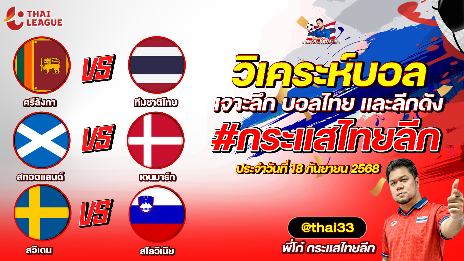 กระแสไทยลีก ทรรศนะบอล 3 คู่ ประจำวันที่ 18/11/2568 รับกระแสไทยลีก ทีเด็ดบอลวันนี้ ทีเด็ดบอลไทย ทรรศนะบอล 3 คู่ กับ พี่โก๋บอลไทย ได้ทุกวันที่ ช่อง กระแสไทยลีก ทีเด็ดบอล 3 คู๋ หน้ากล้อง | วันอังคาร ที่ 18 พฤศจิกายน 2568 ▁▁▁▁▁▁▁▁▁▁▁▁▁▁▁▁▁▁▁▁▁▁▁ 00:25 | ศรีลังกา VS ทีมชาติไทย 01:50 | สกอตแลนด์ WEB ADMIN 18 พฤศจิกายน 2025