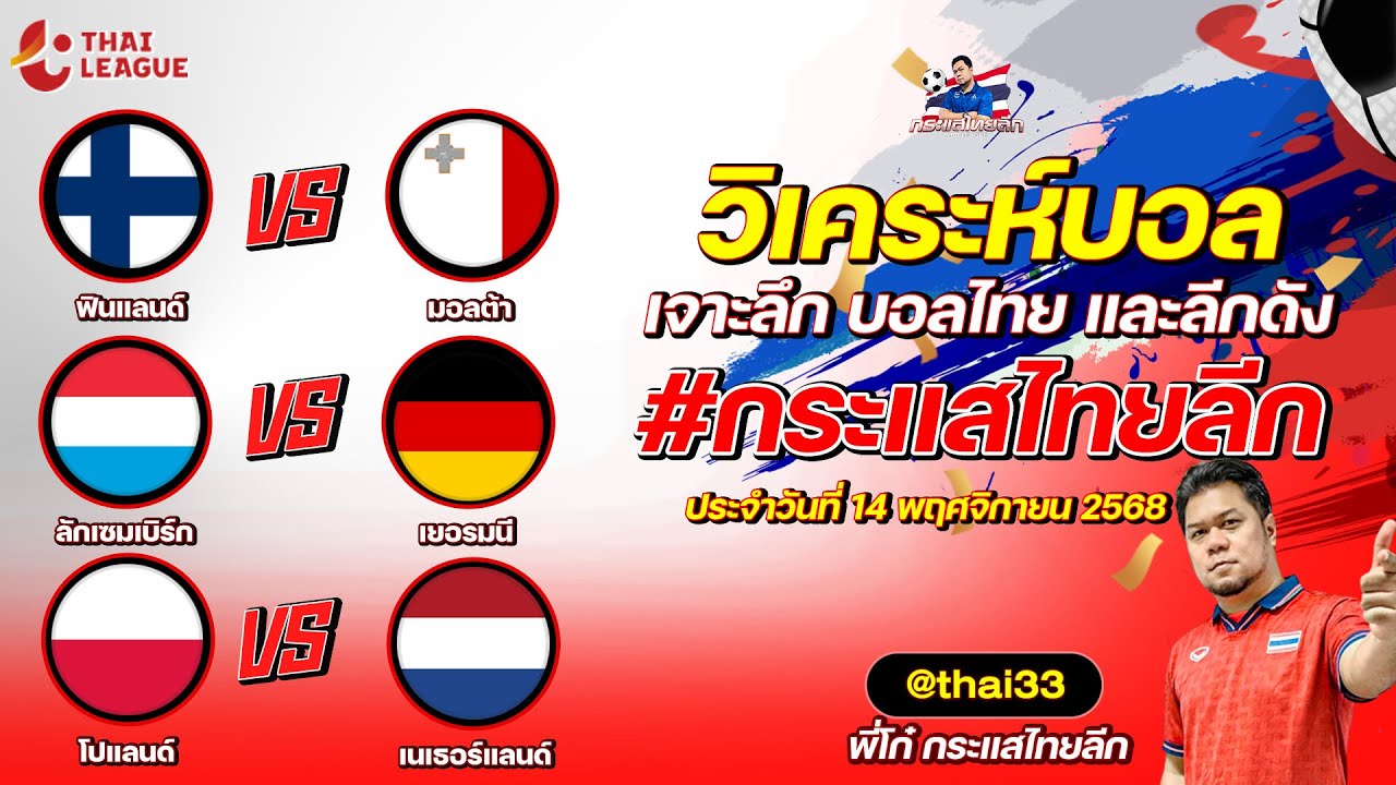 กระแสไทยลีก ทรรศนะบอล 3 คู่ ประจำวันที่ 14/11/2568 รับกระแสไทยลีก ทีเด็ดบอลวันนี้ ทีเด็ดบอลไทย ทรรศนะบอล 3 คู่ กับ พี่โก๋บอลไทย ได้ทุกวันที่ ช่อง กระแสไทยลีก ทีเด็ดบอล 3 คู๋ หน้ากล้อง | วันศุกร์ ที่ 14 พฤศจิกายน 2568 ▁▁▁▁▁▁▁▁▁▁▁▁▁▁▁▁▁▁▁▁▁▁▁ 00:34 | ฟินแลนด์ VS มอลต้า 01:45 | WEB ADMIN 14 พฤศจิกายน 2025