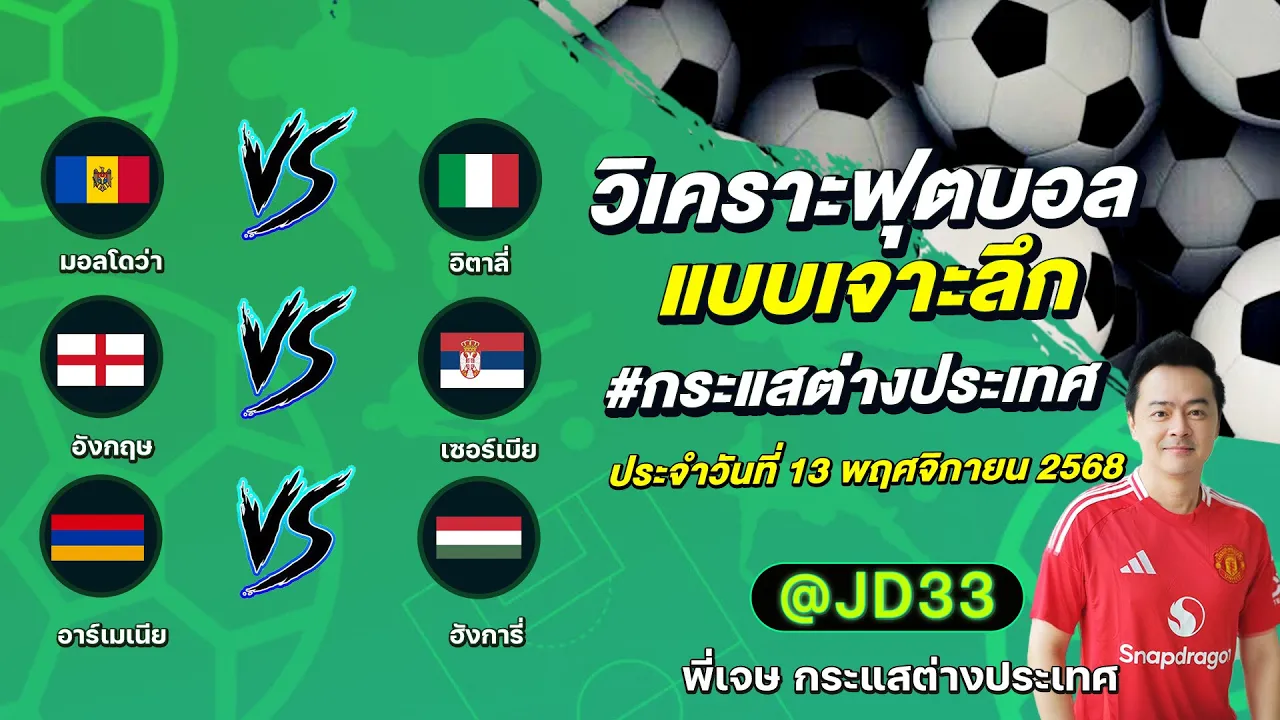 วิเคราะห์บอล กระแสต่างประเทศ 3 คู่ ประจำวันที่ 13/11/2568 รับ ทีเด็ดบอลวันนี้ ทีเด็ดบอลเต็ง ทรรศนะบอล 3 คู่ กับ พี่เจษ กระแสต่างประเทศ ได้ทุกวันที่นี่ที่เดียว ทีเด็ดบอล 3 คู่ หน้ากล้อง | วันพฤหัสบดี ที่ 13 พฤศจิกายน 2568 ▁▁▁▁▁▁▁▁▁▁▁▁▁▁▁▁▁▁▁▁▁▁▁ 00:22 | มอลโดว่า VS อิตาลี่ 01:18 | อังกฤษ VS WEB ADMIN 13 พฤศจิกายน 2025