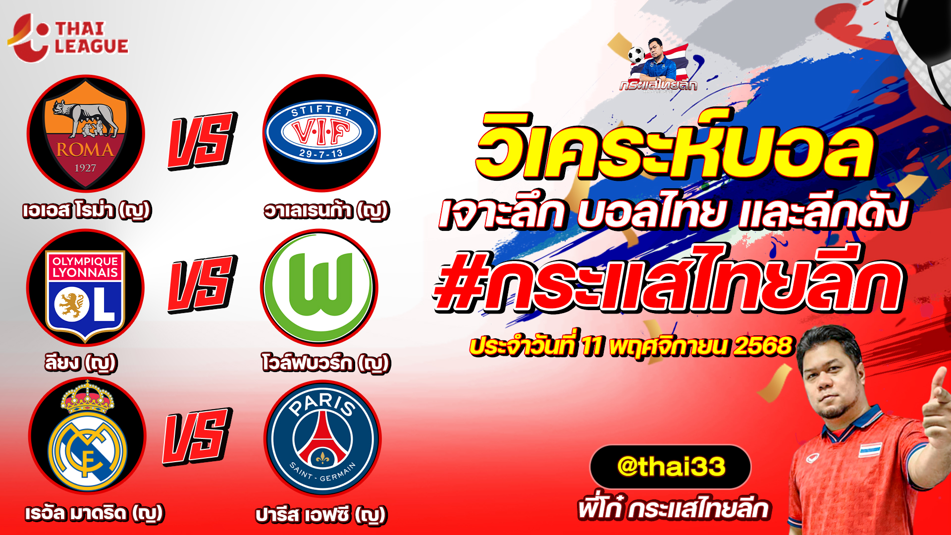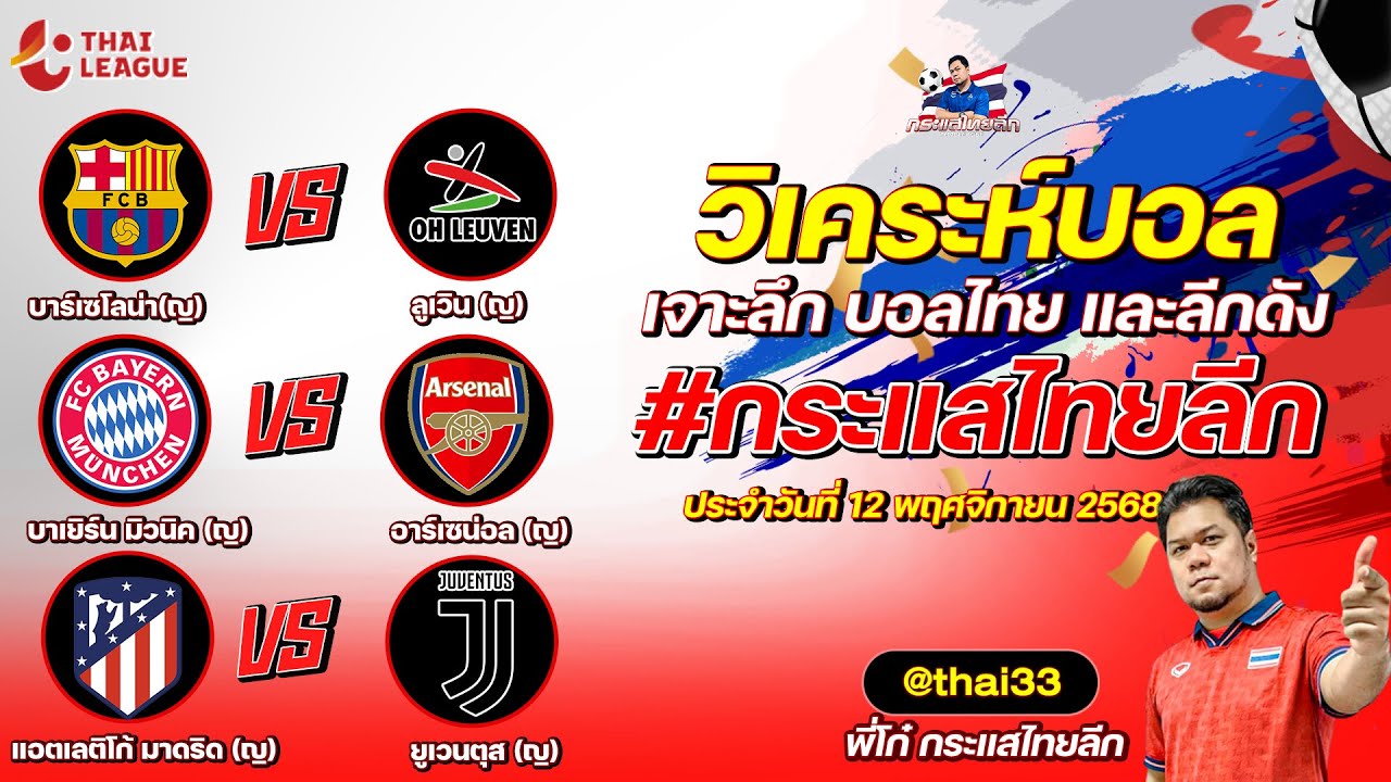 กระแสไทยลีก ทรรศนะบอล 3 คู่ ประจำวันที่ 11/11/2568 รับกระแสไทยลีก ทีเด็ดบอลวันนี้ ทีเด็ดบอลไทย ทรรศนะบอล 3 คู่ กับ พี่โก๋บอลไทย ได้ทุกวันที่ ช่อง กระแสไทยลีก ทีเด็ดบอล 3 คู๋ หน้ากล้อง | วันพุธ ที่ 12 พฤศจิกายน 2568 ▁▁▁▁▁▁▁▁▁▁▁▁▁▁▁▁▁▁▁▁▁▁▁ 00:29 | บาร์เซโลน่า(ญ) VS ลูเวิน (ญ) 01:27 WEB ADMIN 12 พฤศจิกายน 2025