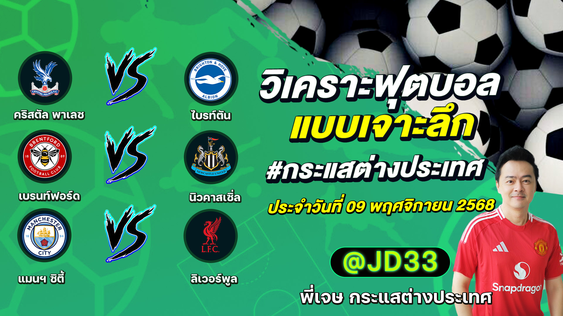 วิเคราะห์บอล กระแสต่างประเทศ 3 คู่ ประจำวันที่ 09/11/2568 รับ ทีเด็ดบอลวันนี้ ทีเด็ดบอลเต็ง ทรรศนะบอล 3 คู่ กับ พี่เจษ กระแสต่างประเทศ ได้ทุกวันที่นี่ที่เดียว ทีเด็ดบอล 3 คู่ หน้ากล้อง | วันอาทิตย์ ที่ 09 พฤศจิกายน 2568 ▁▁▁▁▁▁▁▁▁▁▁▁▁▁▁▁▁▁▁▁▁▁▁ 00:20 | คริสตัล พาเลซ VS ไบรท์ตัน 01:21 | เเบรนท์ฟอร์ด WEB ADMIN 9 พฤศจิกายน 2025