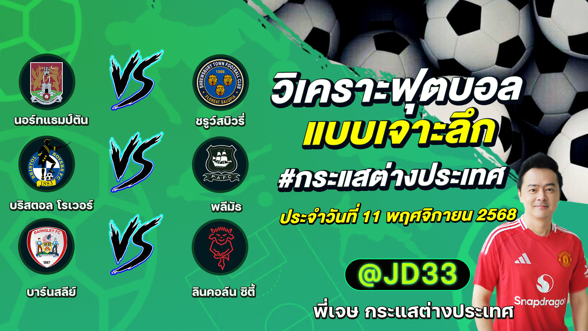 วิเคราะห์บอล กระแสต่างประเทศ 3 คู่ ประจำวันที่ 11/11/2568 รับ ทีเด็ดบอลวันนี้ ทีเด็ดบอลเต็ง ทรรศนะบอล 3 คู่ กับ พี่เจษ กระแสต่างประเทศ ได้ทุกวันที่นี่ที่เดียว ทีเด็ดบอล 3 คู่ หน้ากล้อง | วันอังคาร ที่ 11 พฤศจิกายน 2568 ▁▁▁▁▁▁▁▁▁▁▁▁▁▁▁▁▁▁▁▁▁▁▁ 00:20| นอร์ทแธมป์ตัน VS ชรูว์สบิวรี่ 01:02 |บริสตอล โรเวอร์ VS พลีมัธ WEB ADMIN 11 พฤศจิกายน 2025