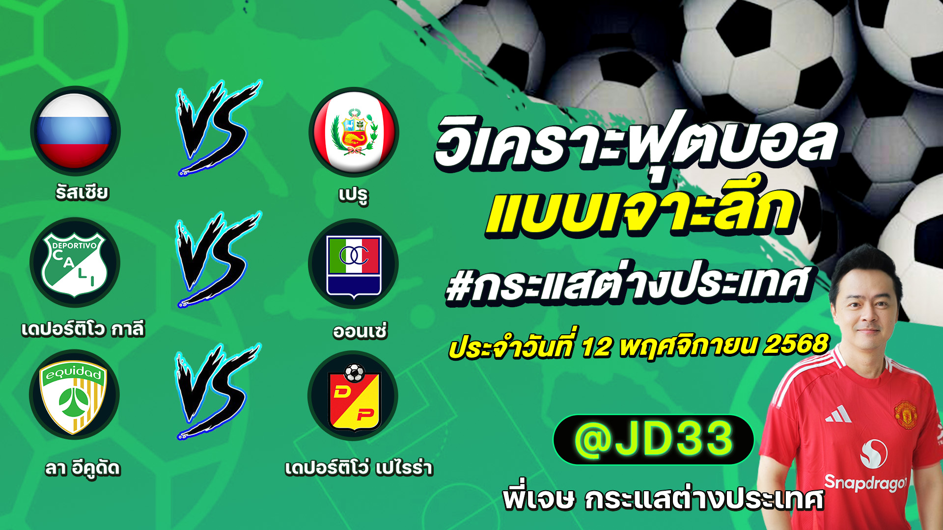 วิเคราะห์บอล กระแสต่างประเทศ 3 คู่ ประจำวันที่ 12/11/2568 รับ ทีเด็ดบอลวันนี้ ทีเด็ดบอลเต็ง ทรรศนะบอล 3 คู่ กับ พี่เจษ กระแสต่างประเทศ ได้ทุกวันที่นี่ที่เดียว ทีเด็ดบอล 3 คู่ หน้ากล้อง | วันพุธ ที่ 12 พฤศจิกายน 2568 ▁▁▁▁▁▁▁▁▁▁▁▁▁▁▁▁▁▁▁▁▁▁▁ 00:25 | รัสเซีย VS เปรู 01:21 | เดปอร์ติโว WEB ADMIN 12 พฤศจิกายน 2025