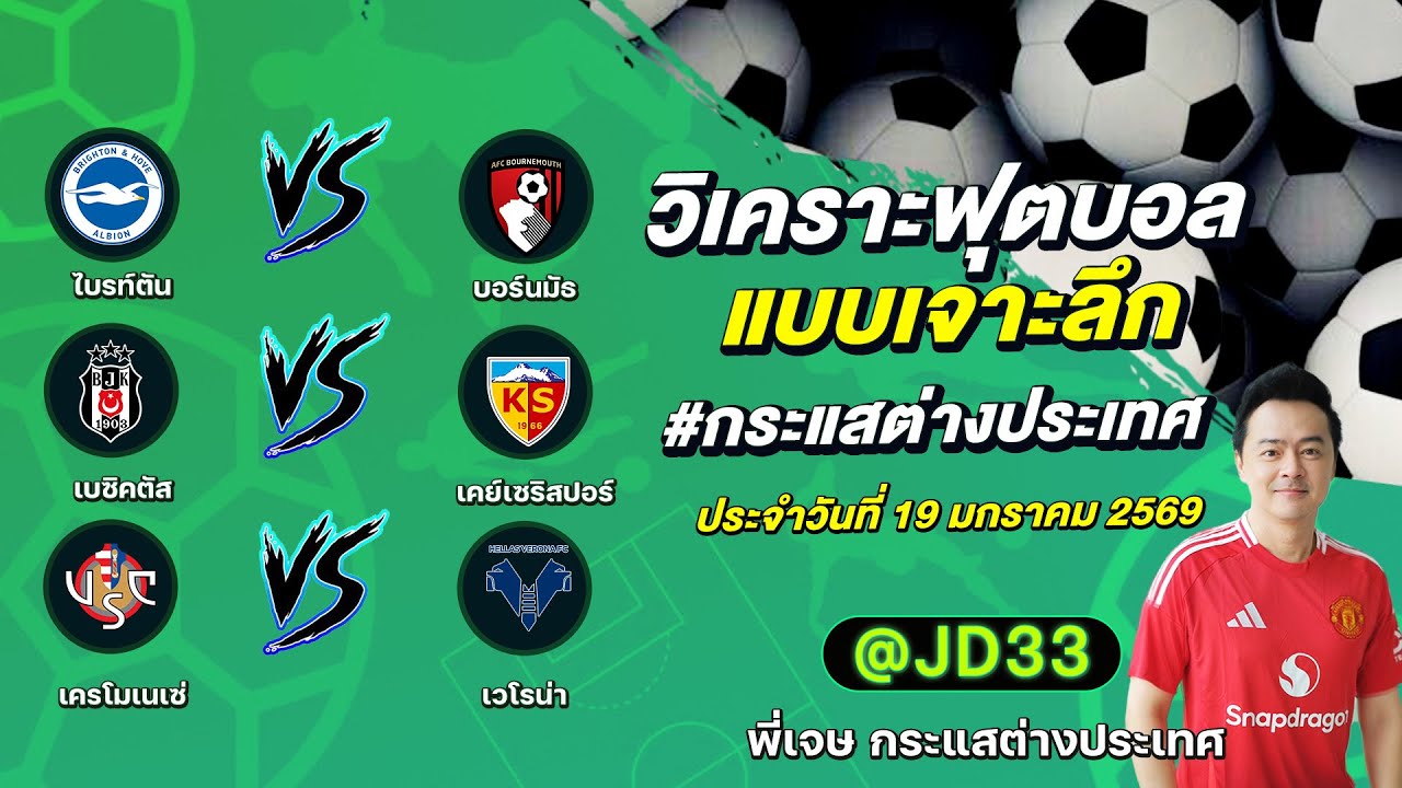 วิเคราะห์บอล กระแสต่างประเทศ 3 คู่ ประจำวันที่ 19/01/2569 รับ ทีเด็ดบอลวันนี้ ทีเด็ดบอลเต็ง ทรรศนะบอล 3 คู่ กับ พี่เจษ กระแสต่างประเทศ ได้ทุกวันที่นี่ที่เดียว ทีเด็ดบอล 3 คู่ หน้ากล้อง | วันจันทร์ ที่ 19 มกราคม 2568 ▁▁▁▁▁▁▁▁▁▁▁▁▁▁▁▁▁▁▁▁▁▁▁ 00:21 | ไบรท์ตัน VS บอร์นมัธ 01:20 | เบซิคตัส VS WEB ADMIN 19 มกราคม 2026