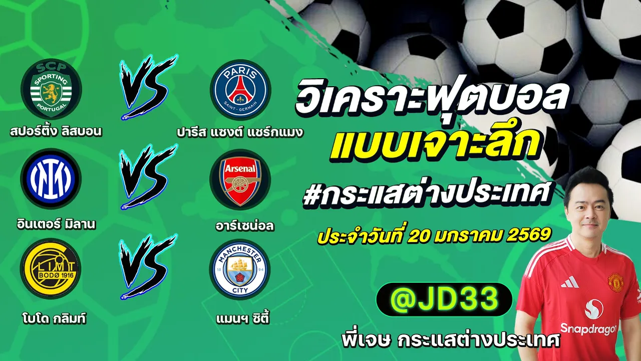 วิเคราะห์บอล กระแสต่างประเทศ 3 คู่ ประจำวันที่ 20/01/2569 รับ ทีเด็ดบอลวันนี้ ทีเด็ดบอลเต็ง ทรรศนะบอล 3 คู่ กับ พี่เจษ กระแสต่างประเทศ ได้ทุกวันที่นี่ที่เดียว ทีเด็ดบอล 3 คู่ หน้ากล้อง | วันอังคาร ที่ 20 มกราคม 2568 ▁▁▁▁▁▁▁▁▁▁▁▁▁▁▁▁▁▁▁▁▁▁▁ 00:20 | สปอร์ติ้ง ลิสบอน VS ปารีส แซงต์ แชร์กแมง 01:16 WEB ADMIN 20 มกราคม 2026