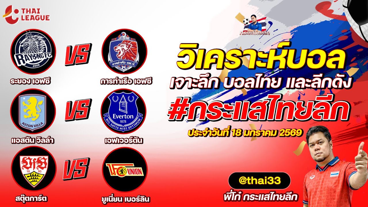 กระแสไทยลีก ทรรศนะบอล 3 คู่ ประจำวันที่ 18/01/2569 รับกระแสไทยลีก ทีเด็ดบอลวันนี้ ทีเด็ดบอลไทย ทรรศนะบอล 3 คู่ กับ พี่โก๋บอลไทย ได้ทุกวันที่ ช่อง กระแสไทยลีก ทีเด็ดบอล 3 คู๋ หน้ากล้อง | วันอาิตย์ ที่ 18 มกราคม 2569 ▁▁▁▁▁▁▁▁▁▁▁▁▁▁▁▁▁▁▁▁▁▁▁ 00:48 | ระยอง เอฟซี VS การท่าเรือ เอฟซี 02:20 WEB ADMIN 18 มกราคม 2026