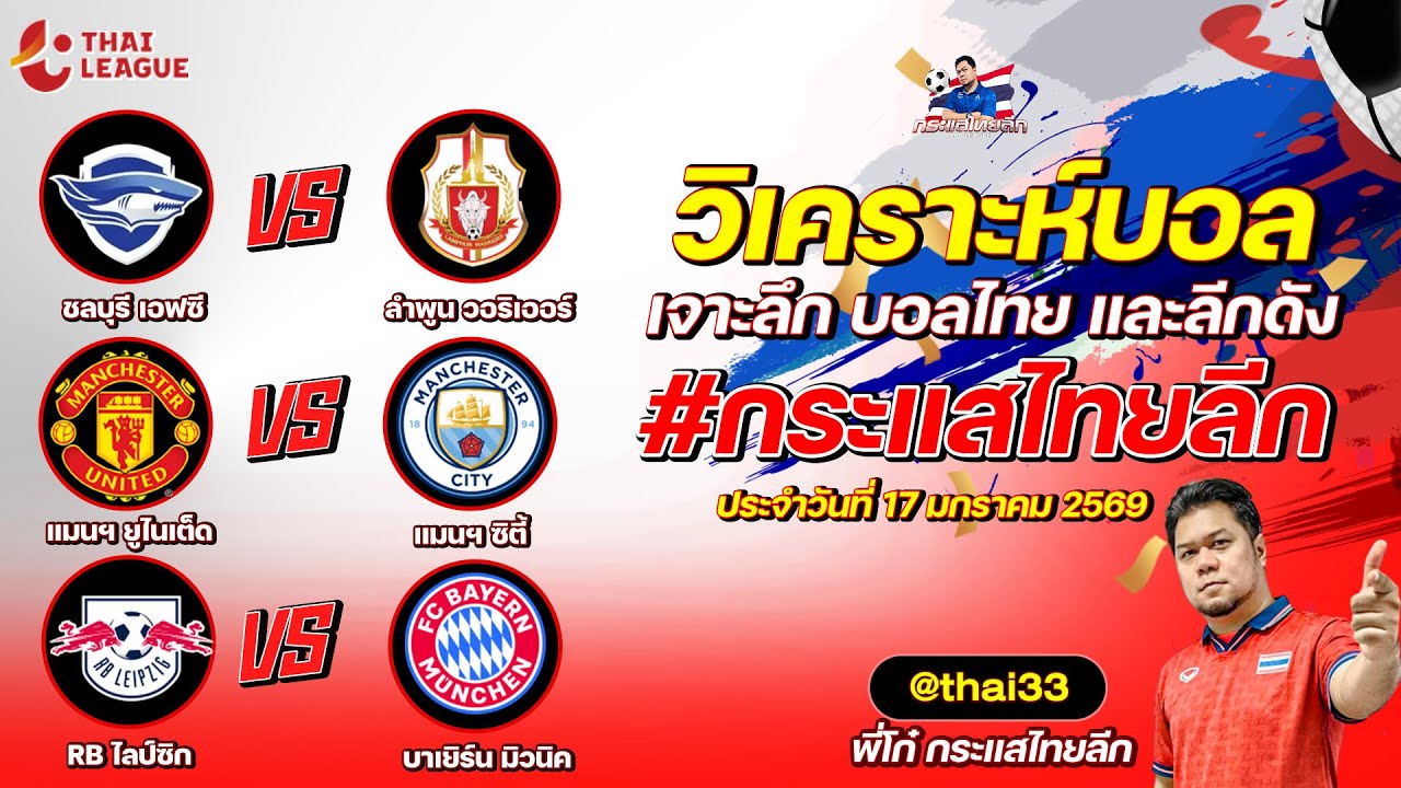 กระแสไทยลีก ทรรศนะบอล 3 คู่ ประจำวันที่ 17/01/2569 รับกระแสไทยลีก ทีเด็ดบอลวันนี้ ทีเด็ดบอลไทย ทรรศนะบอล 3 คู่ กับ พี่โก๋บอลไทย ได้ทุกวันที่ ช่อง กระแสไทยลีก ทีเด็ดบอล 3 คู๋ หน้ากล้อง | วันเสาร์ ที่ 17 มกราคม 2569 ▁▁▁▁▁▁▁▁▁▁▁▁▁▁▁▁▁▁▁▁▁▁▁ 00:45 | ชลบุรี เอฟซี VS ลำพูน วอริเออร์ 01:58 WEB ADMIN 17 มกราคม 2026