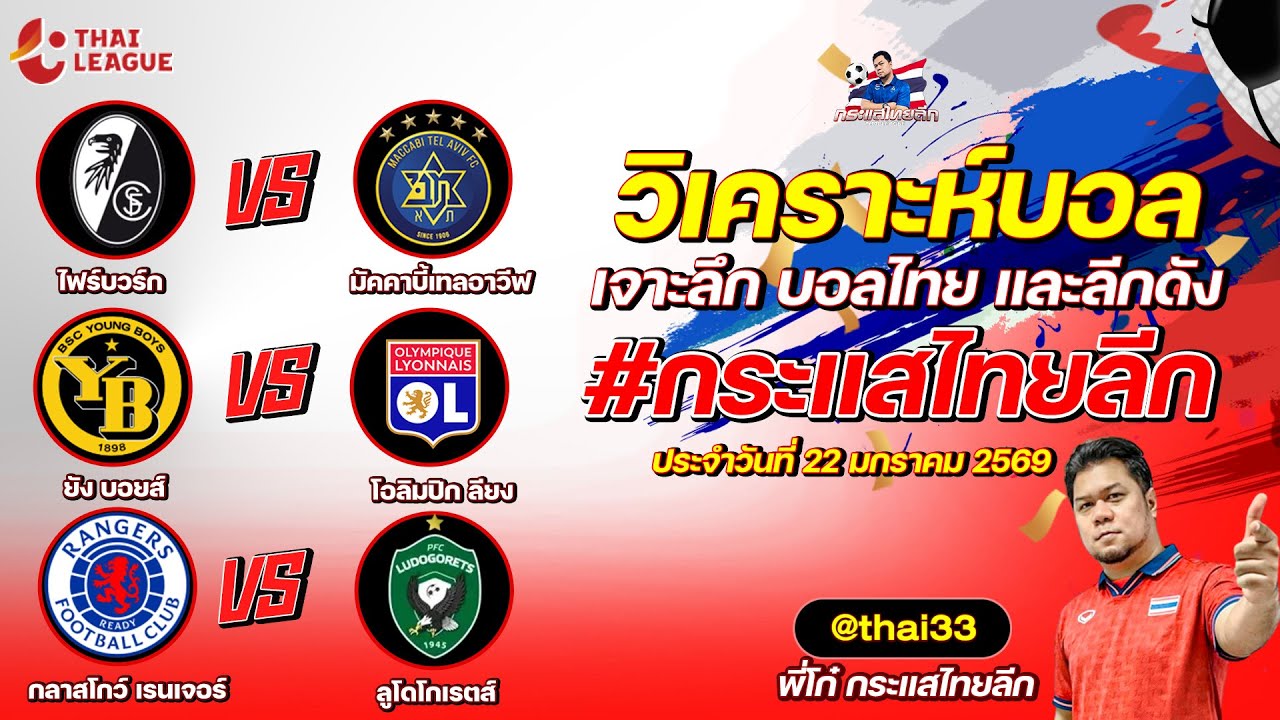 กระแสไทยลีก ทรรศนะบอล 3 คู่ ประจำวันที่ 22/01/2569 รับกระแสไทยลีก ทีเด็ดบอลวันนี้ ทีเด็ดบอลไทย ทรรศนะบอล 3 คู่ กับ พี่โก๋บอลไทย ได้ทุกวันที่ ช่อง กระแสไทยลีก ทีเด็ดบอล 3 คู๋ หน้ากล้อง | วันพฤหัสบดี ที่ 22 มกราคม 2569 ▁▁▁▁▁▁▁▁▁▁▁▁▁▁▁▁▁▁▁▁▁▁▁ 00:18 | ไฟร์บวร์ก VS มัคคาบี้เทลอาวีฟ 01:34 | ยัง WEB ADMIN 22 มกราคม 2026