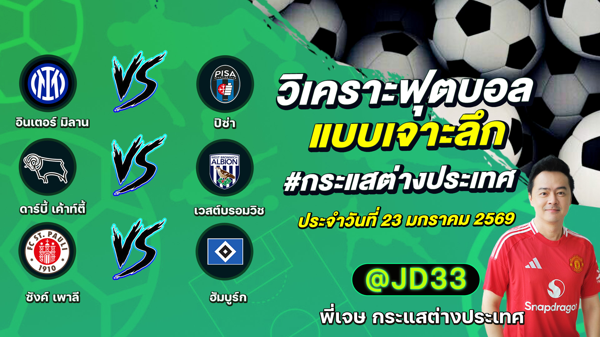 วิเคราะห์บอล กระแสต่างประเทศ 3 คู่ ประจำวันที่ 23/01/2569 รับ ทีเด็ดบอลวันนี้ ทีเด็ดบอลเต็ง ทรรศนะบอล 3 คู่ กับ พี่เจษ กระแสต่างประเทศ ได้ทุกวันที่นี่ที่เดียว ทีเด็ดบอล 3 คู่ หน้ากล้อง | วันศุกร์ ที่ 23 มกราคม 2568 ▁▁▁▁▁▁▁▁▁▁▁▁▁▁▁▁▁▁▁▁▁▁▁ 00:20 | อินเตอร์ มิลาน VS ปิซ่า 01:33 | WEB ADMIN 23 มกราคม 2026