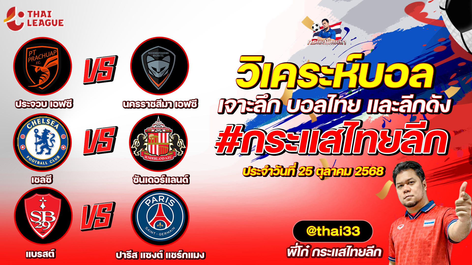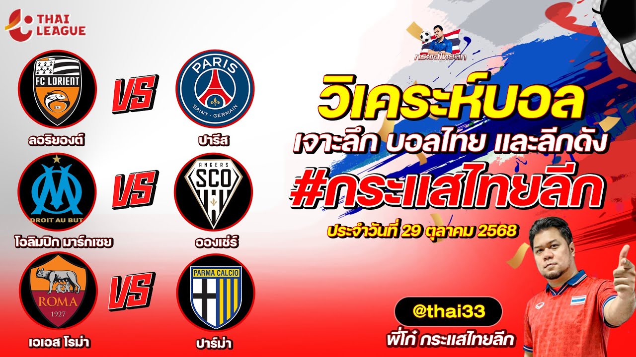 กระแสไทยลีก ทรรศนะบอล 3 คู่ ประจำวันที่ 29/10/2568 รับกระแสไทยลีก ทีเด็ดบอลวันนี้ ทีเด็ดบอลไทย ทรรศนะบอล 3 คู่ กับ พี่โก๋บอลไทย ได้ทุกวันที่ ช่อง กระแสไทยลีก ทีเด็ดบอล 3 คู๋ หน้ากล้อง | วันพุธ ที่ 29 ตุลาคม 2568 ▁▁▁▁▁▁▁▁▁▁▁▁▁▁▁▁▁▁▁▁▁▁▁ 00:27 | ลอริยองต์ VS ปารีส แซงต์ แชร์กแมง 01:24 WEB ADMIN 29 ตุลาคม 2025
