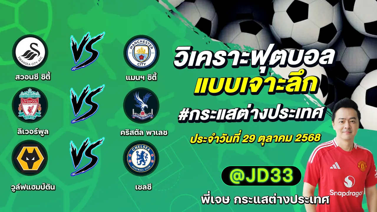 วิเคราะห์บอล กระแสต่างประเทศ 3 คู่ ประจำวันที่ 29/10/2568 รับ ทีเด็ดบอลวันนี้ ทีเด็ดบอลเต็ง ทรรศนะบอล 3 คู่ กับ พี่เจษ กระแสต่างประเทศ ได้ทุกวันที่นี่ที่เดียว ทีเด็ดบอล 3 คู่ หน้ากล้อง | วันพุธ ที่ 29 ตุลาคม 2568 ▁▁▁▁▁▁▁▁▁▁▁▁▁▁▁▁▁▁▁▁▁▁▁ 00:17 | สวอนซี ซิตี้ VS แมนฯ ซิตี้ 01:33 | WEB ADMIN 29 ตุลาคม 2025