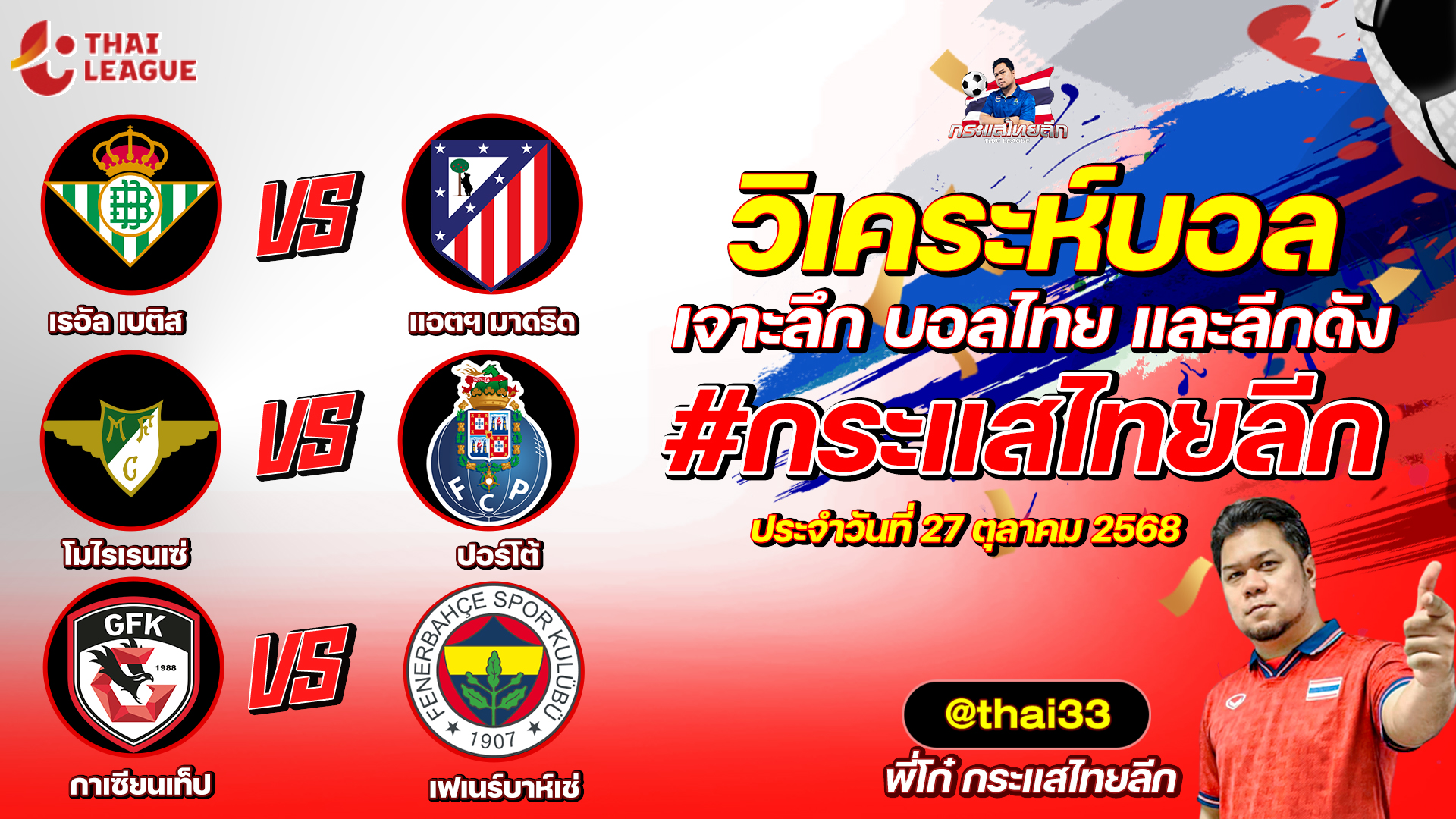 กระแสไทยลีก ทรรศนะบอล 3 คู่ ประจำวันที่ 27/10/2568 รับกระแสไทยลีก ทีเด็ดบอลวันนี้ ทีเด็ดบอลไทย ทรรศนะบอล 3 คู่ กับ พี่โก๋บอลไทย ได้ทุกวันที่ ช่อง กระแสไทยลีก ทีเด็ดบอล 3 คู๋ หน้ากล้อง | วันจันทร์ ที่ 27 ตุลาคม 2568 ▁▁▁▁▁▁▁▁▁▁▁▁▁▁▁▁▁▁▁▁▁▁▁ 00:33 | เรอัล เบติส VS แอตฯ มาดริด WEB ADMIN 27 ตุลาคม 2025