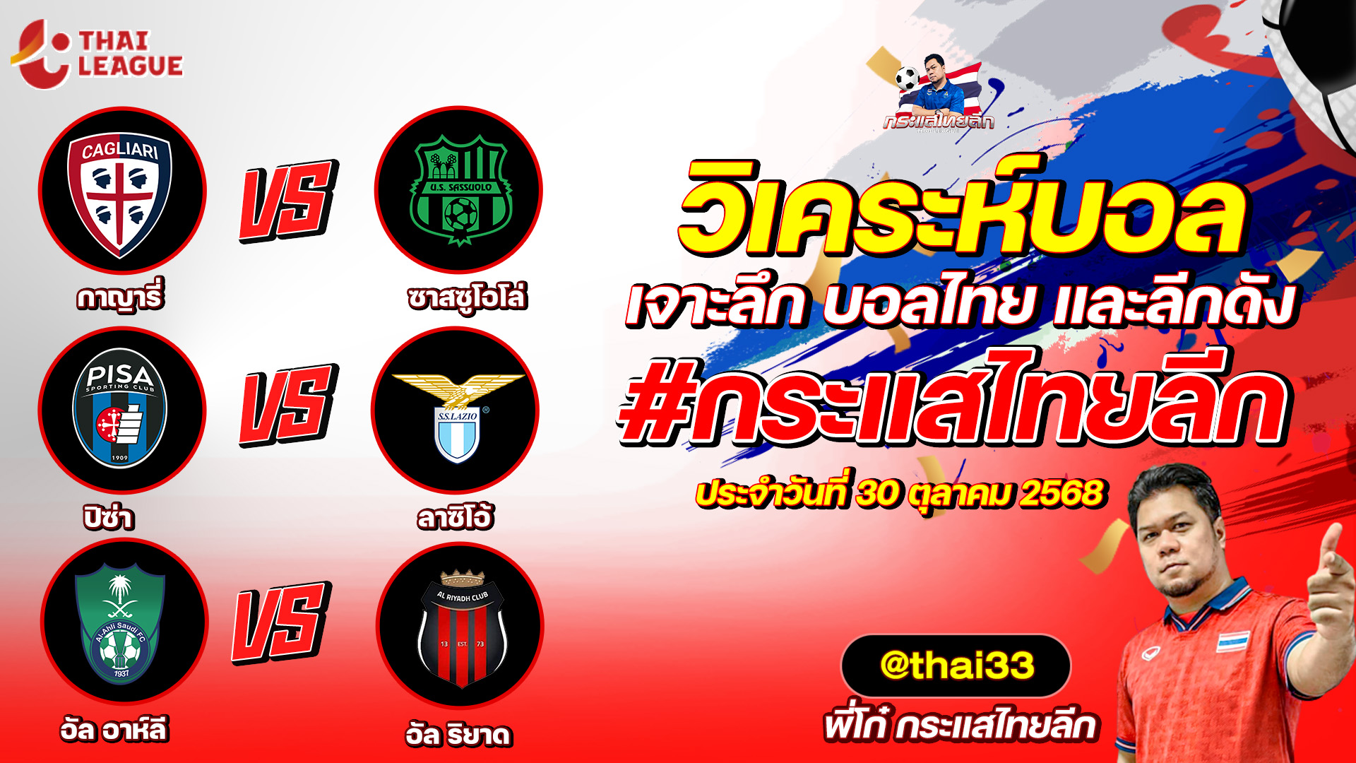 กระแสไทยลีก ทรรศนะบอล 3 คู่ ประจำวันที่ 30/10/2568 รับกระแสไทยลีก ทีเด็ดบอลวันนี้ ทีเด็ดบอลไทย ทรรศนะบอล 3 คู่ กับ พี่โก๋บอลไทย ได้ทุกวันที่ ช่อง กระแสไทยลีก ทีเด็ดบอล 3 คู๋ หน้ากล้อง | วันพฤหัสบดี ที่ 30 ตุลาคม 2568 ▁▁▁▁▁▁▁▁▁▁▁▁▁▁▁▁▁▁▁▁▁▁▁ 00:41 | กาญารี่ VS ซาสซูโอโล่ 01:44 | WEB ADMIN 30 ตุลาคม 2025