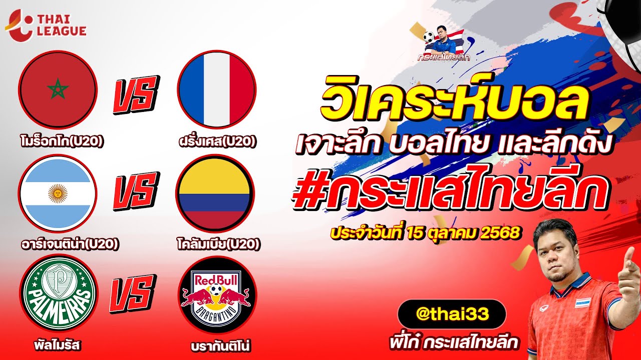 กระแสไทยลีก ทรรศนะบอล 3 คู่ ประจำวันที่ 15/10/2568 รับกระแสไทยลีก ทีเด็ดบอลวันนี้ ทีเด็ดบอลไทย ทรรศนะบอล 3 คู่ กับ พี่โก๋บอลไทย ได้ทุกวันที่ ช่อง กระแสไทยลีก ทีเด็ดบอล 3 คู๋ หน้ากล้อง | วันอังคาร ที่ 15 ตุลาคม 2568 ▁▁▁▁▁▁▁▁▁▁▁▁▁▁▁▁▁▁▁▁▁▁▁ 00:35 | โมร็อกโก(U20) VS ฝรั่งเศส(U20) 01:31 | อาร์เจนติน่า(U20) WEB ADMIN 15 ตุลาคม 2025