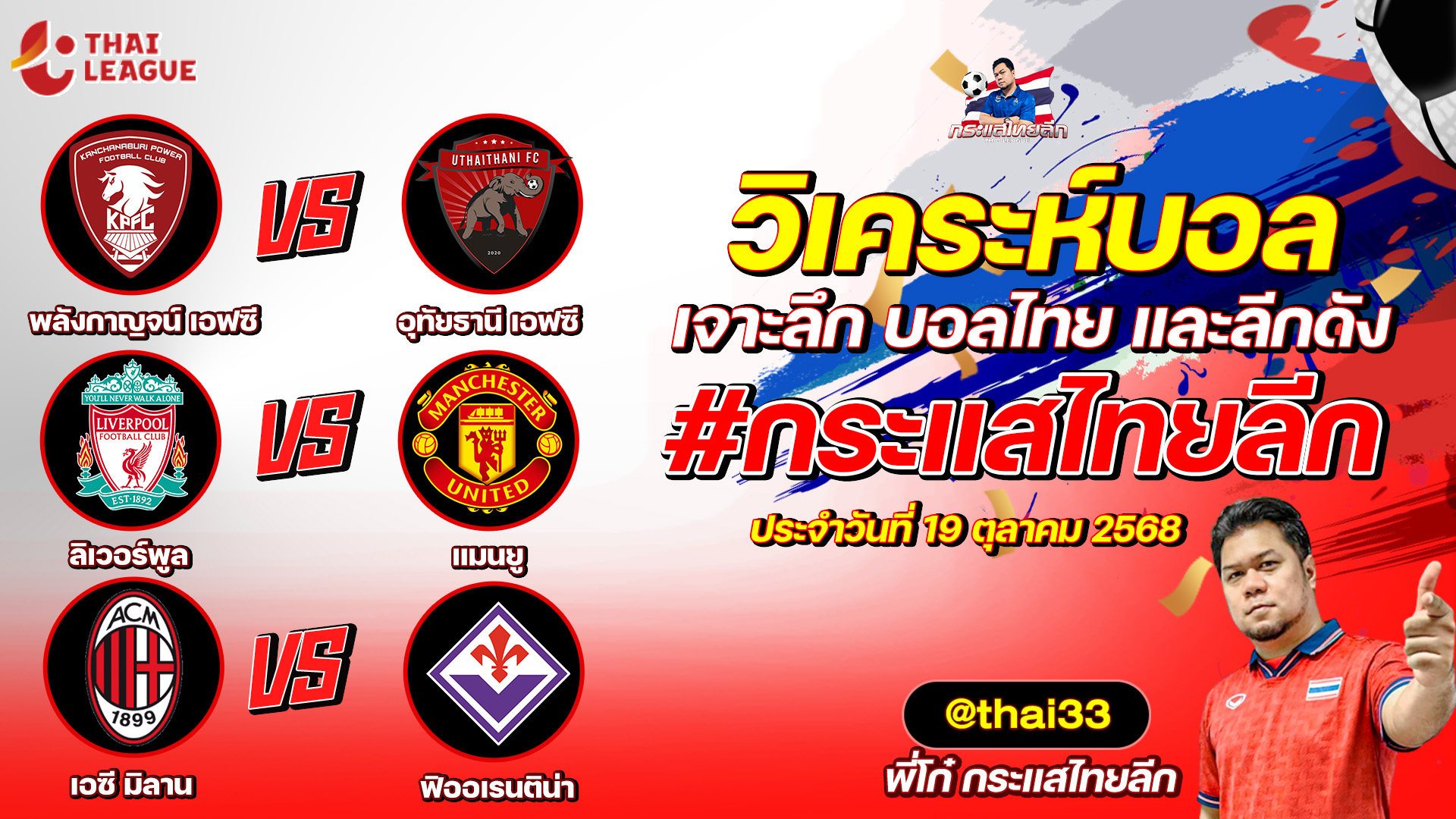 กระแสไทยลีก ทรรศนะบอล 3 คู่ ประจำวันที่ 19/10/2568 รับกระแสไทยลีก ทีเด็ดบอลวันนี้ ทีเด็ดบอลไทย ทรรศนะบอล 3 คู่ กับ พี่โก๋บอลไทย ได้ทุกวันที่ ช่อง กระแสไทยลีก ทีเด็ดบอล 3 คู๋ หน้ากล้อง | วันอาทิตย์ ที่ 19 ตุลาคม 2568 ▁▁▁▁▁▁▁▁▁▁▁▁▁▁▁▁▁▁▁▁▁▁▁ 00:34 | พลังกาญจน์ เอฟซี VS อุทัยธานี เอฟซี 01:42 WEB ADMIN 19 ตุลาคม 2025