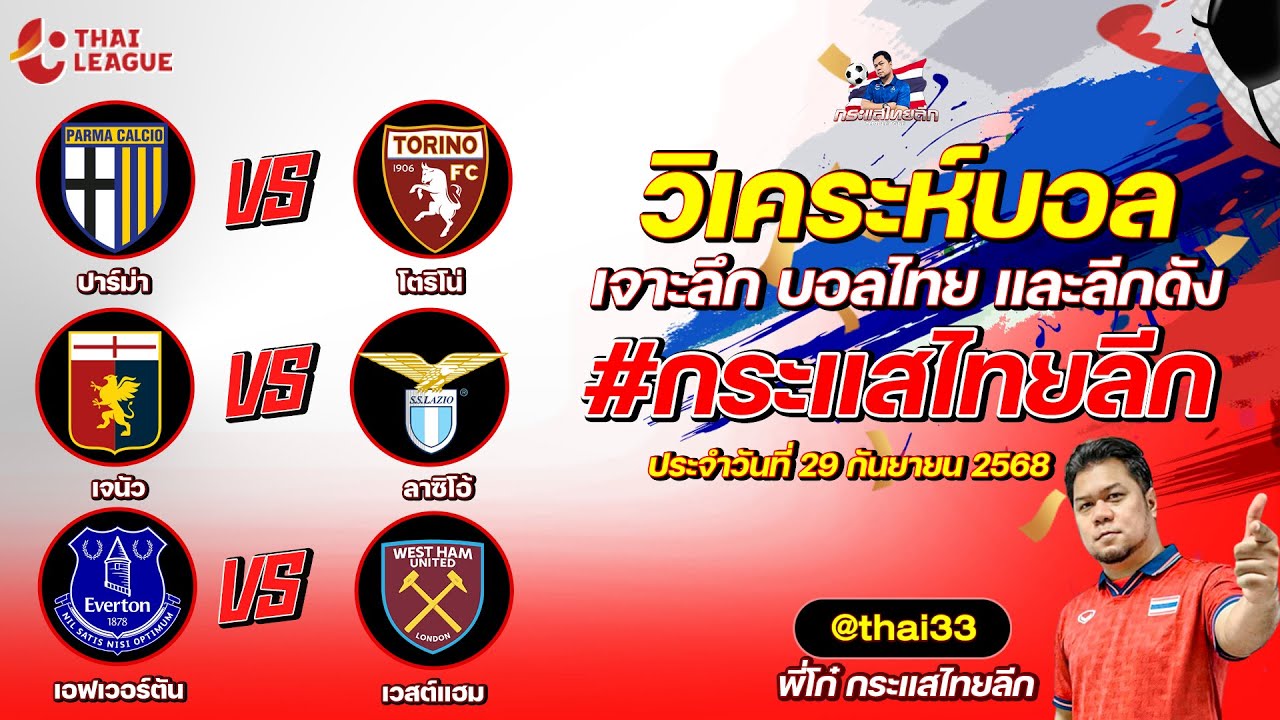 กระแสไทยลีก ทรรศนะบอล 3 คู่ ประจำวันที่ 29/09/2568 รับกระแสไทยลีก ทีเด็ดบอลวันนี้ ทีเด็ดบอลไทย ทรรศนะบอล 3 คู่ กับ พี่โก๋บอลไทย ได้ทุกวันที่ ช่อง กระแสไทยลีก ทีเด็ดบอล 3 คู๋ หน้ากล้อง | วันจันทร์ ที่ 29 กันยายน 2568 ▁▁▁▁▁▁▁▁▁▁▁▁▁▁▁▁▁▁▁▁▁▁▁ 00:19 | ปาร์ม่า VS โตริโน่ 01:45 | WEB ADMIN 29 กันยายน 2025