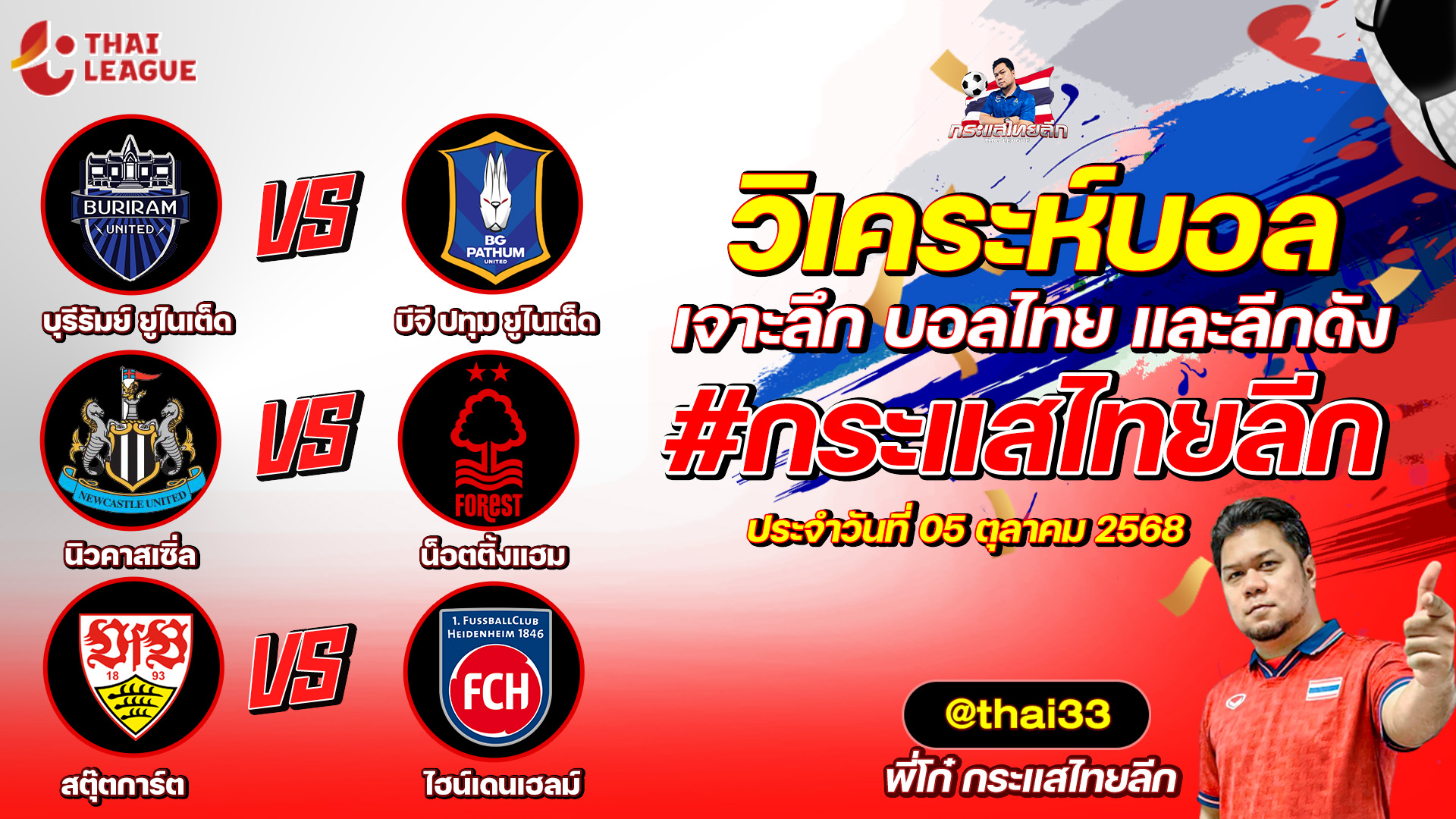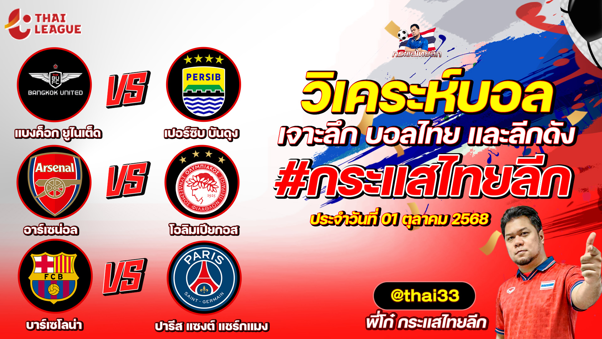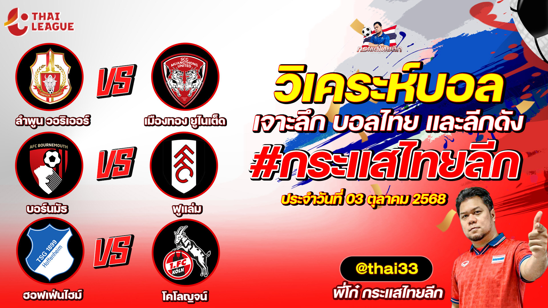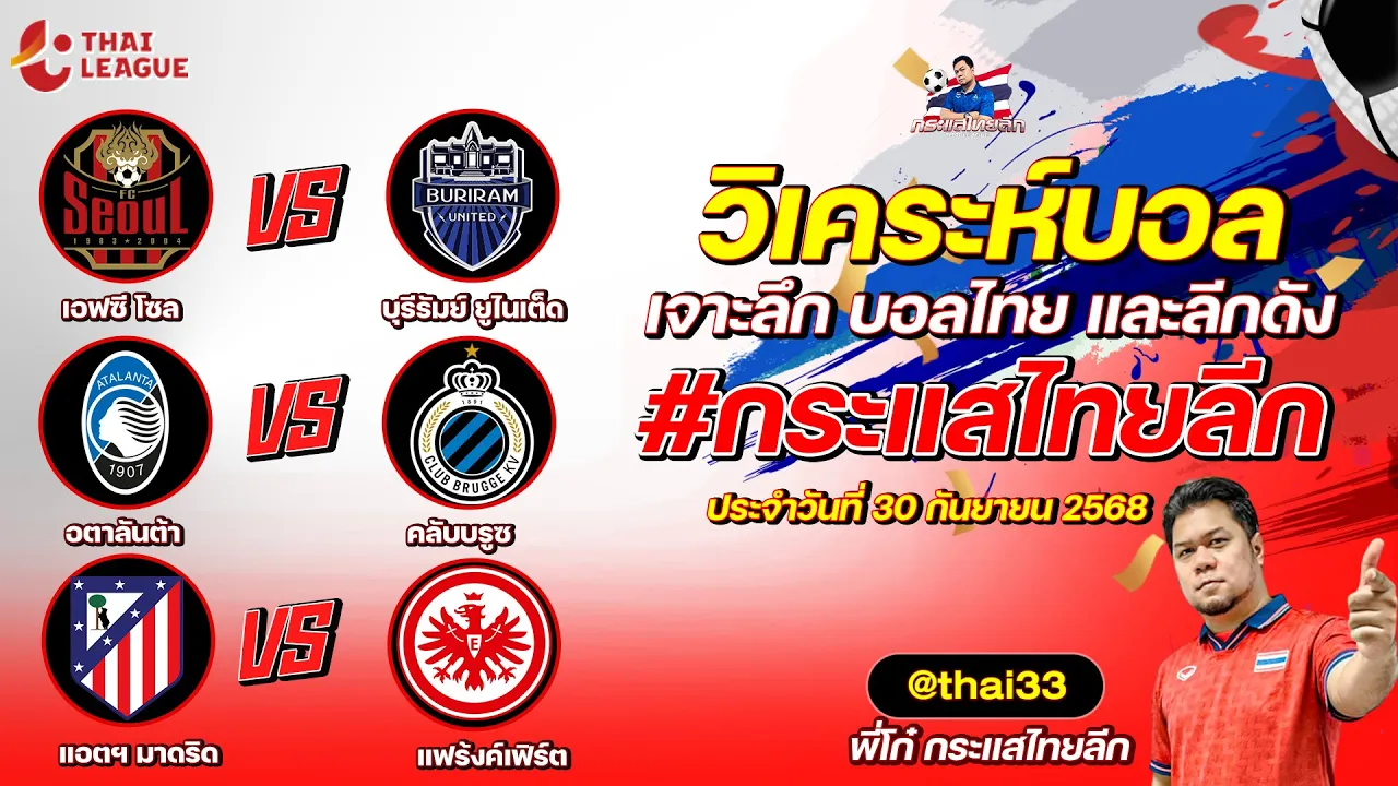 กระแสไทยลีก ทรรศนะบอล 3 คู่ ประจำวันที่ 01/10/2568 รับกระแสไทยลีก ทีเด็ดบอลวันนี้ ทีเด็ดบอลไทย ทรรศนะบอล 3 คู่ กับ พี่โก๋บอลไทย ได้ทุกวันที่ ช่อง กระแสไทยลีก ทีเด็ดบอล 3 คู๋ หน้ากล้อง | วันพุธ ที่ 01 ตุลาคม 2568 ▁▁▁▁▁▁▁▁▁▁▁▁▁▁▁▁▁▁▁▁▁▁▁ 01:08 | แบงค็อก ยูไนเต็ด VS เปอร์ซิบ บันดุง WEB ADMIN 1 ตุลาคม 2025