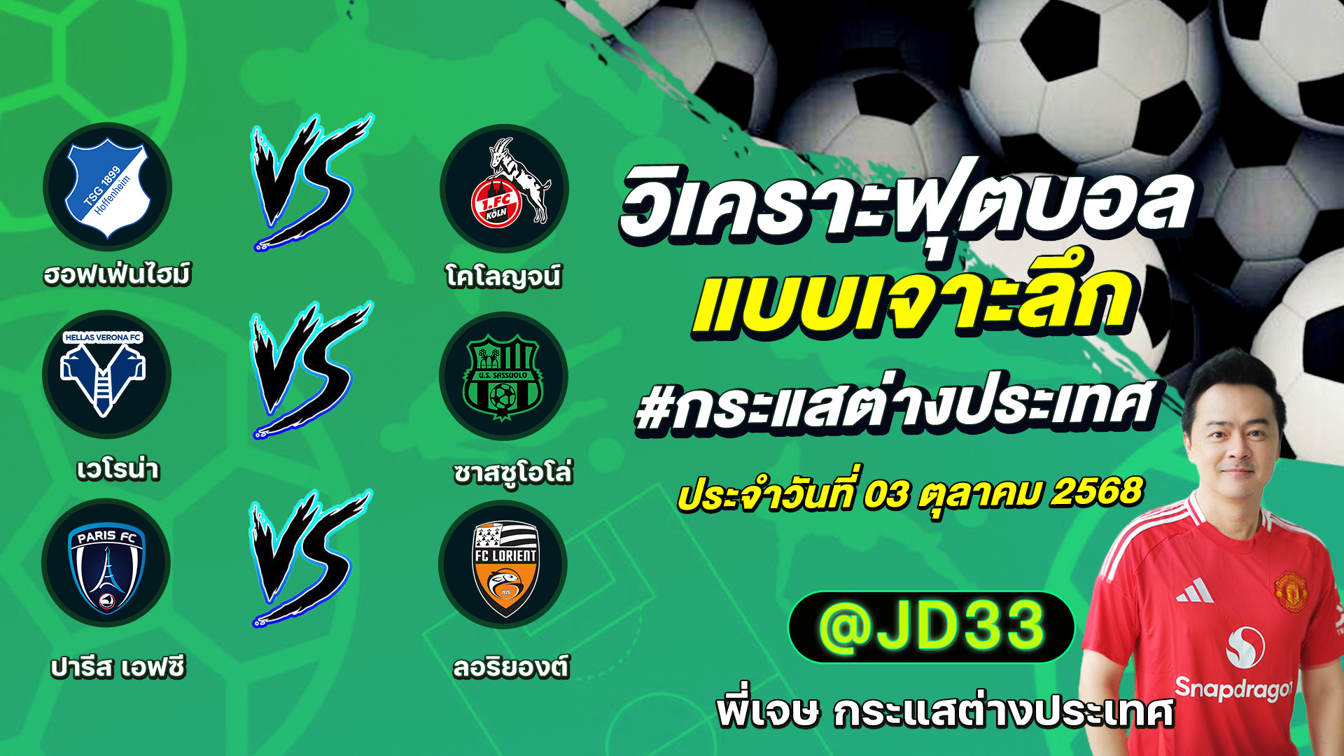 วิเคราะห์บอล กระแสต่างประเทศ 3 คู่ ประจำวันที่ 01/10/2568 รับ ทีเด็ดบอลวันนี้ ทีเด็ดบอลเต็ง ทรรศนะบอล 3 คู่ กับ พี่เจษ กระแสต่างประเทศ ได้ทุกวันที่นี่ที่เดียว ทีเด็ดบอล 3 คู่ หน้ากล้อง | วันศุกร์ ที่ 03 ตุลาคม 2568 ▁▁▁▁▁▁▁▁▁▁▁▁▁▁▁▁▁▁▁▁▁▁▁ 00:17 | ฮอฟเฟ่นไฮม์ VS โคโลญจน์ 01:20 | เวโรน่า WEB ADMIN 3 ตุลาคม 2025