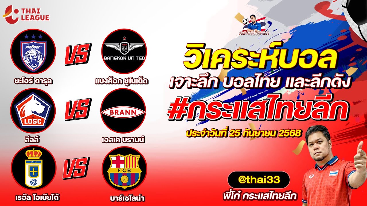 กระแสไทยลีก ทรรศนะบอล 3 คู่ ประจำวันที่ 25/09/2568 รับกระแสไทยลีก ทีเด็ดบอลวันนี้ ทีเด็ดบอลไทย ทรรศนะบอล 3 คู่ กับ พี่โก๋บอลไทย ได้ทุกวันที่ ช่อง กระแสไทยลีก ทีเด็ดบอล 3 คู๋ หน้ากล้อง | วัยพฤหัสบดี ที่ 25 กันยายน 2568 ▁▁▁▁▁▁▁▁▁▁▁▁▁▁▁▁▁▁▁▁▁▁▁ 00:17 | ยะโฮร์ ดารุล VS แบงค็อก ยูไนเต็ด WEB ADMIN 25 กันยายน 2025