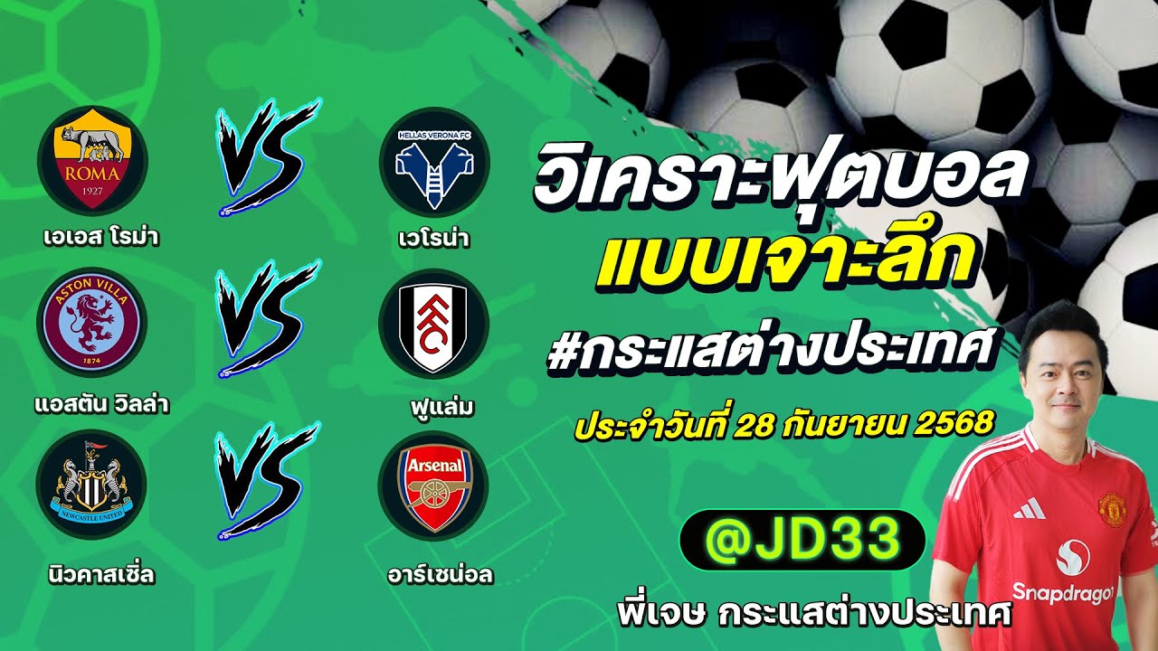 วิเคราะห์บอล กระแสต่างประเทศ 3 คู่ ประจำวันที่ 28/09/2568 รับ ทีเด็ดบอลวันนี้ ทีเด็ดบอลเต็ง ทรรศนะบอล 3 คู่ กับ พี่เจษ กระแสต่างประเทศ ได้ทุกวันที่นี่ที่เดียว ทีเด็ดบอล 3 คู่ หน้ากล้อง | วันอาทิตย์ ที่ 28 กันยายน 2568 ▁▁▁▁▁▁▁▁▁▁▁▁▁▁▁▁▁▁▁▁▁▁▁ 00:20 | เอเอส โรม่า VS เวโรน่า 01:19 | WEB ADMIN 28 กันยายน 2025