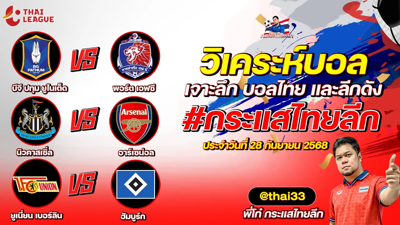 กระแสไทยลีก ทรรศนะบอล 3 คู่ ประจำวันที่ 28/09/2568 รับกระแสไทยลีก ทีเด็ดบอลวันนี้ ทีเด็ดบอลไทย ทรรศนะบอล 3 คู่ กับ พี่โก๋บอลไทย ได้ทุกวันที่ ช่อง กระแสไทยลีก ทีเด็ดบอล 3 คู๋ หน้ากล้อง | วันอาทิตย์ ที่ 28 กันยายน 2568 ▁▁▁▁▁▁▁▁▁▁▁▁▁▁▁▁▁▁▁▁▁▁▁ 00:20 | บีจี ปทุม ยูไนเต็ด VS พอร์ต WEB ADMIN 28 กันยายน 2025
