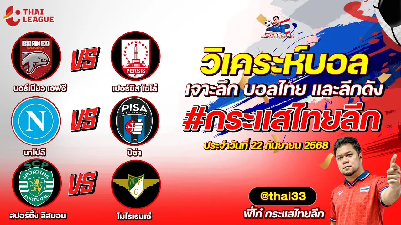 กระแสไทยลีก ทรรศนะบอล 3 คู่ ประจำวันที่ 24/09/2568 รับกระแสไทยลีก ทีเด็ดบอลวันนี้ ทีเด็ดบอลไทย ทรรศนะบอล 3 คู่ กับ พี่โก๋บอลไทย ได้ทุกวันที่ ช่อง กระแสไทยลีก ทีเด็ดบอล 3 คู๋ หน้ากล้อง | วันพุธ ที่ 24 กันยายน 2568 ▁▁▁▁▁▁▁▁▁▁▁▁▁▁▁▁▁▁▁▁▁▁▁ 00:22 | บีจี ปทุม ยูไนเต็ด VS บุรีรัมย์ WEB ADMIN 24 กันยายน 2025