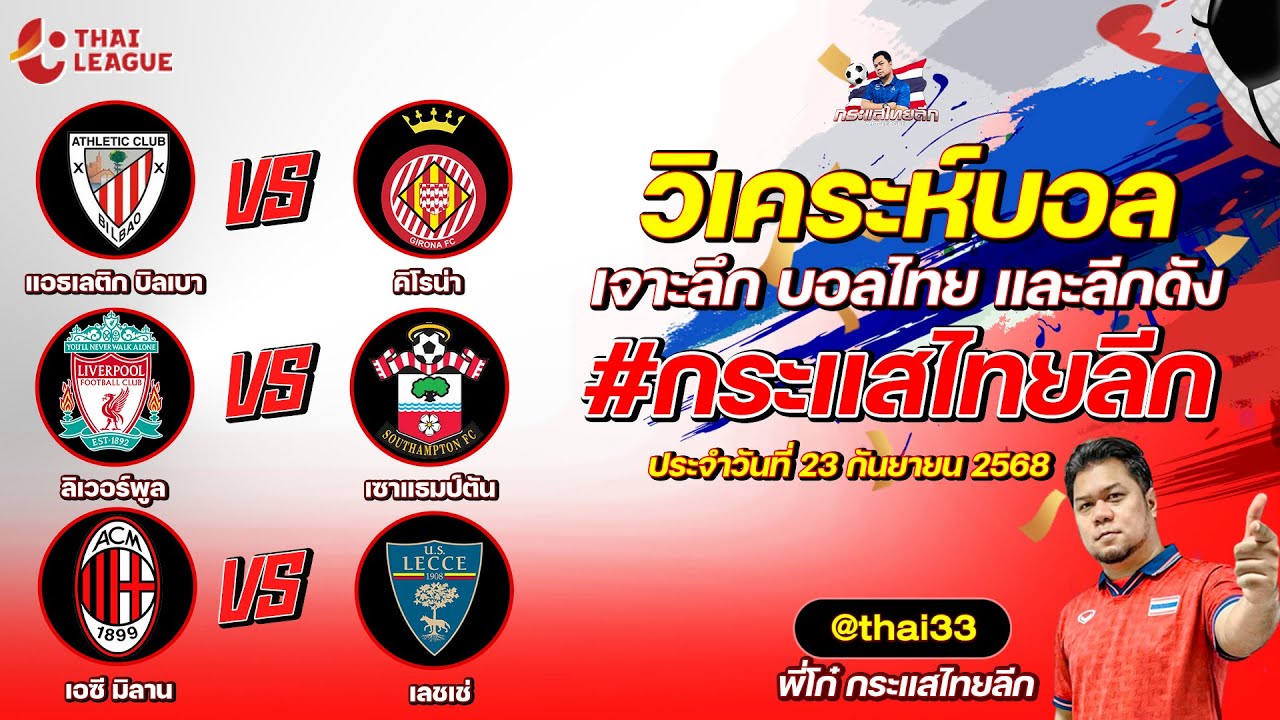 กระแสไทยลีก ทรรศนะบอล 3 คู่ ประจำวันที่ 23/09/2568 รับกระแสไทยลีก ทีเด็ดบอลวันนี้ ทีเด็ดบอลไทย ทรรศนะบอล 3 คู่ กับ พี่โก๋บอลไทย ได้ทุกวันที่ ช่อง กระแสไทยลีก ทีเด็ดบอล 3 คู๋ หน้ากล้อง | วันอังคาร ที่ 23 กันยายน 2568 ▁▁▁▁▁▁▁▁▁▁▁▁▁▁▁▁▁▁▁▁▁▁▁ 00:22 | แอธเลติก บิลเบา VS คิโรน่า 01:52 WEB ADMIN 23 กันยายน 2025