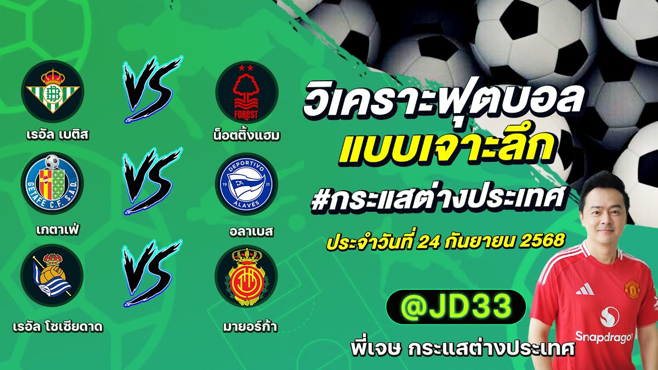 วิเคราะห์บอล กระแสต่างประเทศ 3 คู่ ประจำวันที่ 24/09/2568 รับ ทีเด็ดบอลวันนี้ ทีเด็ดบอลเต็ง ทรรศนะบอล 3 คู่ กับ พี่เจษ กระแสต่างประเทศ ได้ทุกวันที่นี่ที่เดียว ทีเด็ดบอล 3 คู่ หน้ากล้อง | วันพุธ ที่ 24 กันยายน 2568 ▁▁▁▁▁▁▁▁▁▁▁▁▁▁▁▁▁▁▁▁▁▁▁ 00:23 | เรอัล เบติส VS น็อตติ้งแฮม 01:23 | WEB ADMIN 24 กันยายน 2025