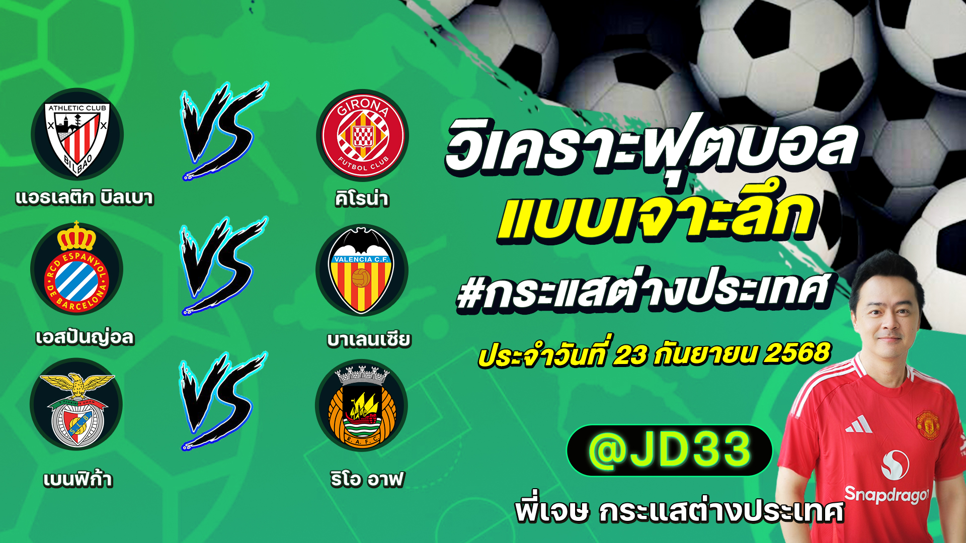 วิเคราะห์บอล กระแสต่างประเทศ 3 คู่ ประจำวันที่ 23/09/2568 รับ ทีเด็ดบอลวันนี้ ทีเด็ดบอลเต็ง ทรรศนะบอล 3 คู่ กับ พี่เจษ กระแสต่างประเทศ ได้ทุกวันที่นี่ที่เดียว ทีเด็ดบอล 3 คู่ หน้ากล้อง | วันอังคาร ที่ 23 กันยายน 2568 ▁▁▁▁▁▁▁▁▁▁▁▁▁▁▁▁▁▁▁▁▁▁▁ 00:21 | แอธเลติก บิลเบา VS คิโรน่า 01:14 | WEB ADMIN 23 กันยายน 2025