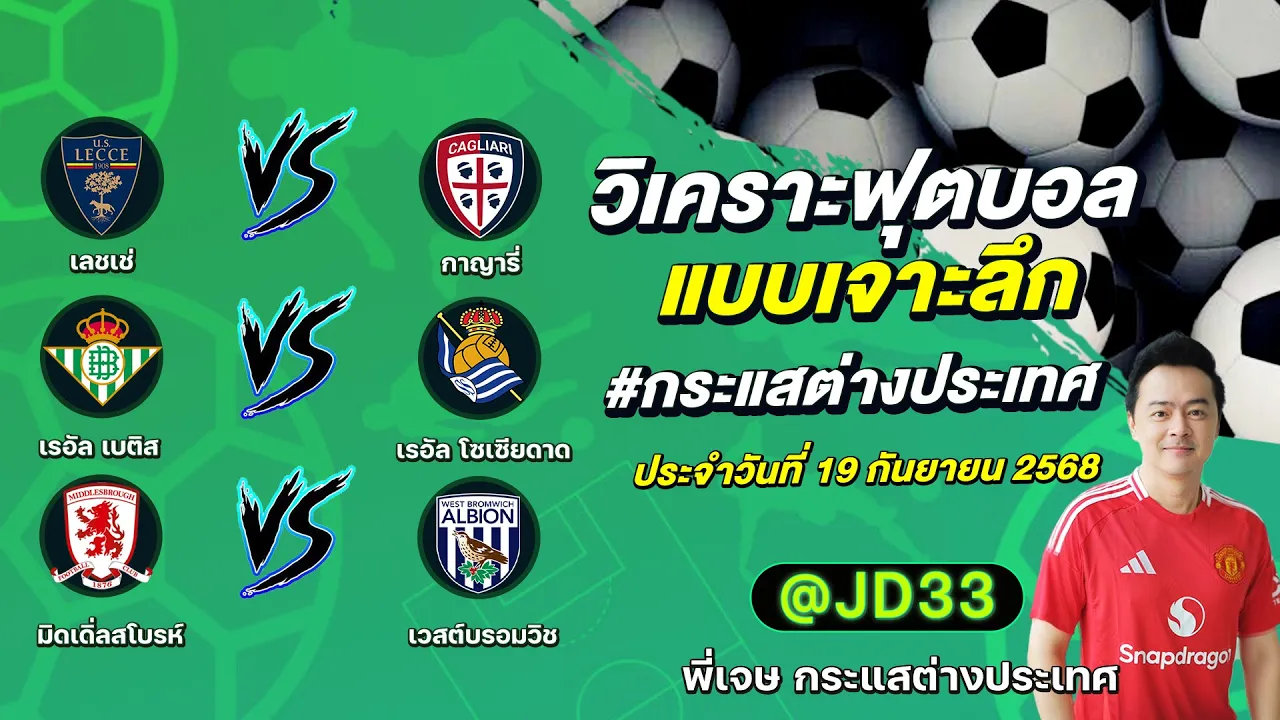 วิเคราะห์บอล กระแสต่างประเทศ 3 คู่ ประจำวันที่ 19/09/2568 รับ ทีเด็ดบอลวันนี้ ทีเด็ดบอลเต็ง ทรรศนะบอล 3 คู่ กับ พี่เจษ กระแสต่างประเทศ ได้ทุกวันที่นี่ที่เดียว ทีเด็ดบอล 3 คู่ หน้ากล้อง | วันศุกร์ ที่ 19 กันยายน 2568 ▁▁▁▁▁▁▁▁▁▁▁▁▁▁▁▁▁▁▁▁▁▁▁ 00:17 | เลชเช่ VS กาญารี่ 01:08 | เรอัล WEB ADMIN 19 กันยายน 2025