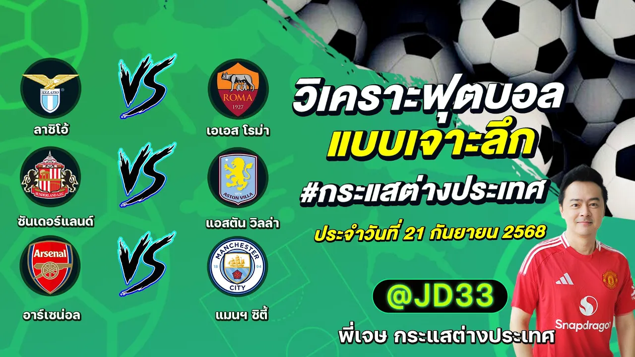 วิเคราะห์บอล กระแสต่างประเทศ 3 คู่ ประจำวันที่ 21/09/2568 รับ ทีเด็ดบอลวันนี้ ทีเด็ดบอลเต็ง ทรรศนะบอล 3 คู่ กับ พี่เจษ กระแสต่างประเทศ ได้ทุกวันที่นี่ที่เดียว ทีเด็ดบอล 3 คู่ หน้ากล้อง | วันอาทิตย์ ที่ 21 กันยายน 2568 ▁▁▁▁▁▁▁▁▁▁▁▁▁▁▁▁▁▁▁▁▁▁▁ 00:23 | ซันเดอร์แลนด์ VS แอสตัน วิลล่า 01:22 | WEB ADMIN 21 กันยายน 2025