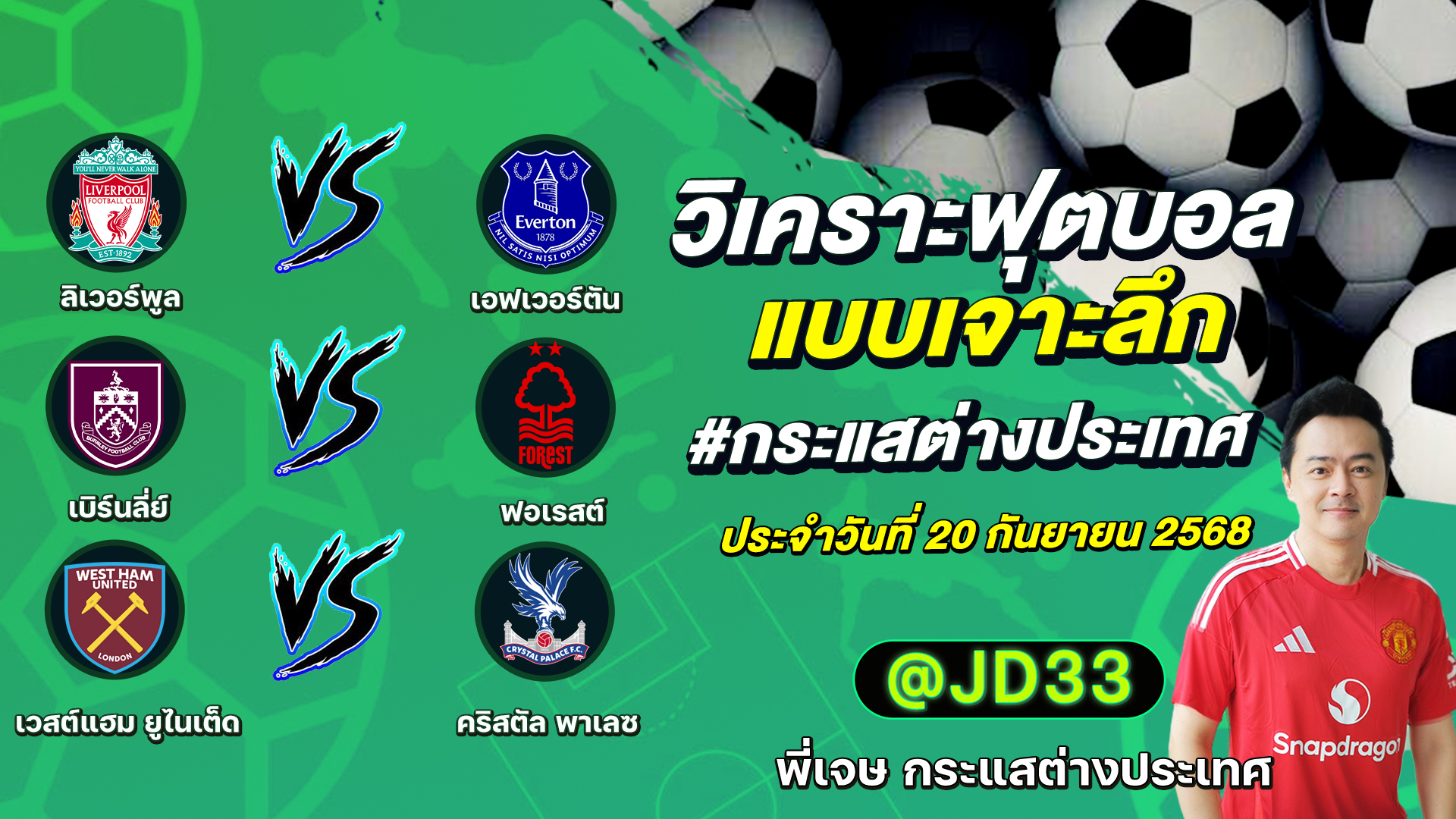 วิเคราะห์บอล กระแสต่างประเทศ 3 คู่ ประจำวันที่ 20/09/2568 รับ ทีเด็ดบอลวันนี้ ทีเด็ดบอลเต็ง ทรรศนะบอล 3 คู่ กับ พี่เจษ กระแสต่างประเทศ ได้ทุกวันที่นี่ที่เดียว ทีเด็ดบอล 3 คู่ หน้ากล้อง | วันเสาร์ ที่ 20 กันยายน 2568 ▁▁▁▁▁▁▁▁▁▁▁▁▁▁▁▁▁▁▁▁▁▁▁ 00:20 | ลิเวอร์พูล VS เอฟเวอร์ตัน 01:42 | เบิร์นลี่ย์ WEB ADMIN 20 กันยายน 2025