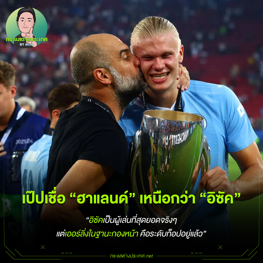 เด็กใครเด็กมัน! เป๊ปเชื่อ “ฮาลันด์” เหนือกว่า “อิซัค” เด็กใครเด็กมัน! เป๊ปเชื่อ “ฮาลันด์” เหนือกว่า “อิซัค” เป๊ป กวาร์ดิโอล่า นายใหญ่ แมนเชสเตอร์ ซิตี้ ให้สัมภาษณ์ถึงกระแสเปรียบเทียบกองหน้า หลัง อาร์เน่ สล็อท กุนซือ ลิเวอร์พูล ออกมาชมว่า อเล็กซานเดอร์ อิซัค คือ “นักเตะที่เก่งที่สุดในโลก”นักข่าวไม่พลาดโยนคำถามให้เป๊ป ซึ่งเจ้าตัวก็ตอบตรงไปตรงมาว่า “ฮาลันด์เหนือกว่านิดหน่อย” พร้อมเสริมว่า.. “อิซัคเป็นผู้เล่นที่สุดยอดจริงๆ เออร์ลิ่งในฐานะกองหน้า คือระดับท็อปอยู่แล้ว”“แต่สำหรับผม ผมจะไม่เปลี่ยนเออร์ลิ่งเพื่อใครทั้งนั้น เพราะเขาไม่ใช่แค่ยอดนักเตะ แต่ยังเป็นคนที่น่ารัก และผมชอบเขา”เป๊ปยังยอมรับว่า ทุกคนมีมุมมองของตัวเอง บางคนอาจยกให้ เอ็มบัปเป้, WEB ADMIN 13 กันยายน 2025
