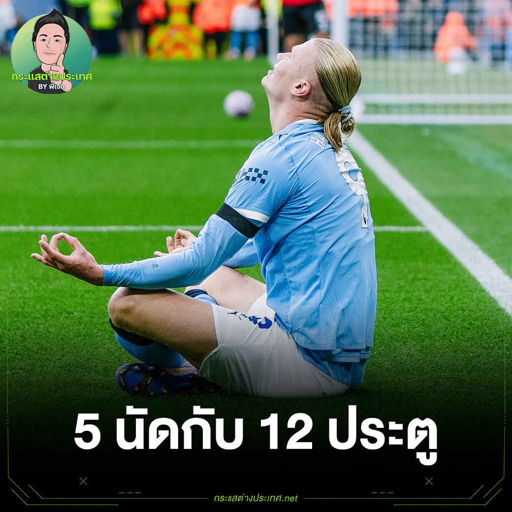 5 นัดกับ 12 ประตู เออร์ลิ่ง ฮาแลนด์ (วัย 25 ปี) ลงเล่นให้ทั้งสโมสรและทีมชาติในเกมอย่างเป็นทางการฤดูกาลนี้ ผลงานสุดโหดมาแล้ว ยิง 2 ประตู vs วูล์ฟส์ ยิงไม่ได้ vs สเปอร์ส ยิง 1 ประตู vs ไบรท์ตัน ยิง 5 จ่าย 2 vs มอลโดวา (7 ประตูมีส่วนร่วมในนัดเดียว!) ยิง 2 ประตู vs แมนฯ ยูไนเต็ด รวมแล้ว: 12 WEB ADMIN 15 กันยายน 2025