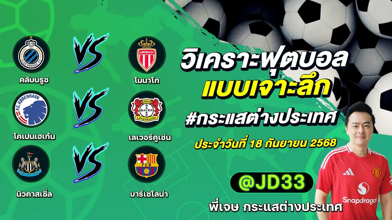 วิเคราะห์บอล กระแสต่างประเทศ 3 คู่ ประจำวันที่ 18/09/2568 รับ ทีเด็ดบอลวันนี้ ทีเด็ดบอลเต็ง ทรรศนะบอล 3 คู่ กับ พี่เจษ กระแสต่างประเทศ ได้ทุกวันที่นี่ที่เดียว ทีเด็ดบอล 3 คู่ หน้ากล้อง | วันพฤหัสบดี ที่ 18 กันยายน 2568 ▁▁▁▁▁▁▁▁▁▁▁▁▁▁▁▁▁▁▁▁▁▁▁ 00:22 | คลับบรูซ VS โมนาโก 01:14 | โคเปนเฮเก้น VS WEB ADMIN 18 กันยายน 2025