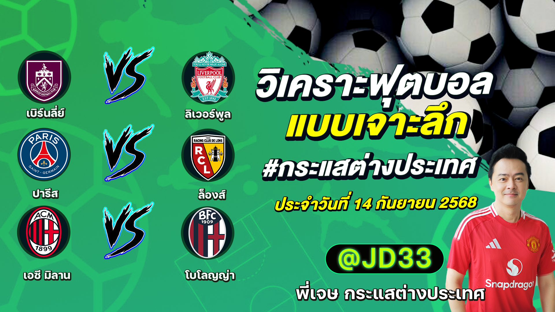 วิเคราะห์บอล กระแสต่างประเทศ 3 คู่ ประจำวันที่ 14/09/2568 รับ ทีเด็ดบอลวันนี้ ทีเด็ดบอลเต็ง ทรรศนะบอล 3 คู่ กับ พี่เจษ กระแสต่างประเทศ ได้ทุกวันที่นี่ที่เดียว ทีเด็ดบอล 3 คู่ หน้ากล้อง | วันอาทิตย์ ที่ 14 กันยายน 2568 ▁▁▁▁▁▁▁▁▁▁▁▁▁▁▁▁▁▁▁▁▁▁▁ 00:17 | เบิร์นลี่ย์ VS ลิเวอร์พูล 01:20 | ปารีส WEB ADMIN 14 กันยายน 2025