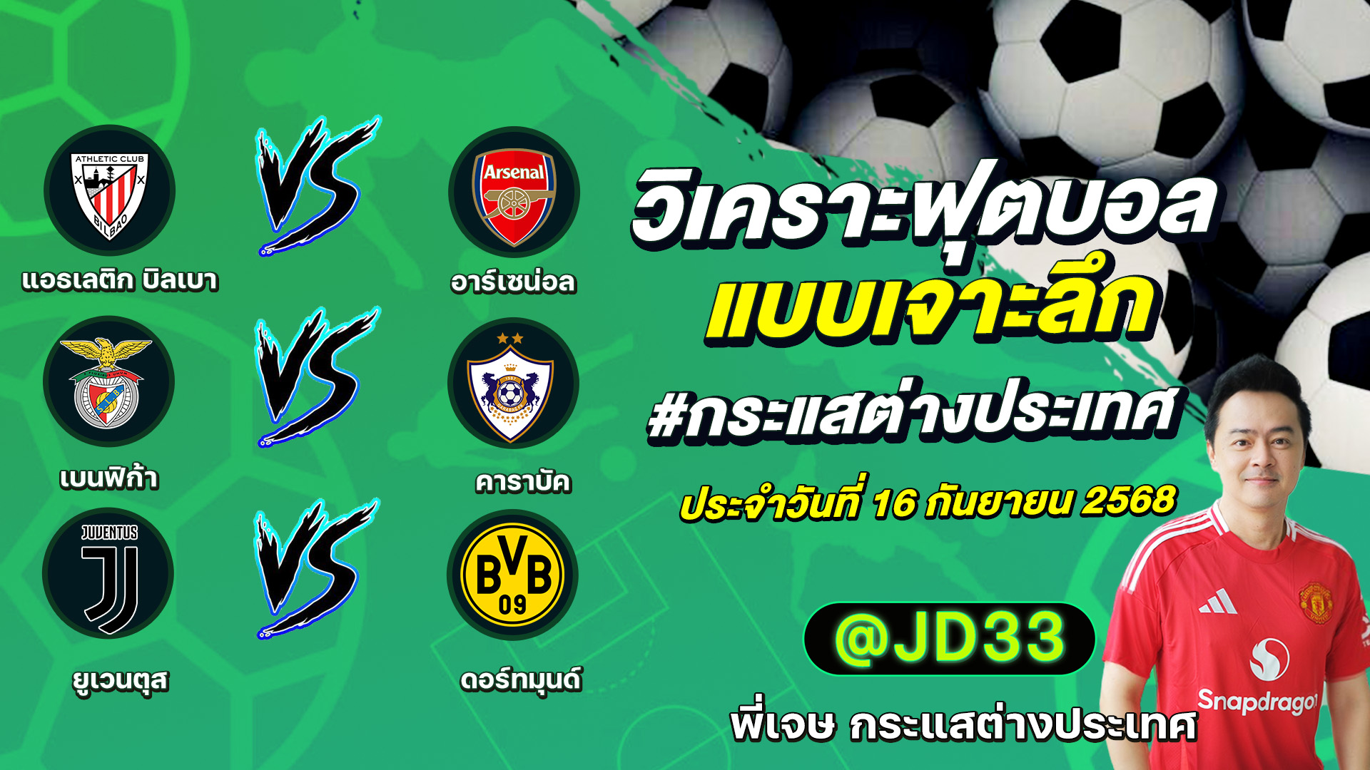 วิเคราะห์บอล กระแสต่างประเทศ 3 คู่ ประจำวันที่ 16/09/2568 รับ ทีเด็ดบอลวันนี้ ทีเด็ดบอลเต็ง ทรรศนะบอล 3 คู่ กับ พี่เจษ กระแสต่างประเทศ ได้ทุกวันที่นี่ที่เดียว ทีเด็ดบอล 3 คู่ หน้ากล้อง | วันอังคาร ที่ 16 กันยายน 2568 ▁▁▁▁▁▁▁▁▁▁▁▁▁▁▁▁▁▁▁▁▁▁▁ 00:18 | แอธเลติก บิลเบา VS อาร์เซน่อล 01:28 | WEB ADMIN 16 กันยายน 2025