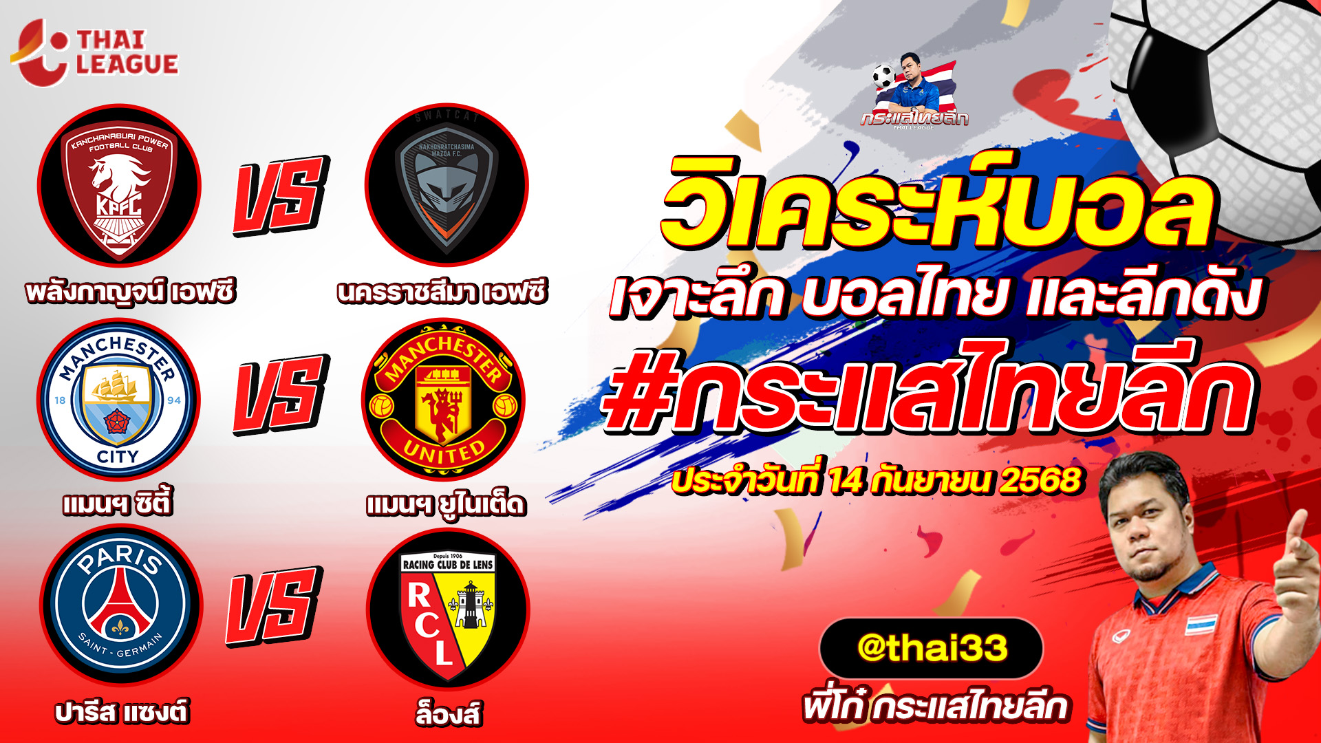 กระแสไทยลีก ทรรศนะบอล 3 คู่ ประจำวันที่ 14/09/2568 รับกระแสไทยลีก ทีเด็ดบอลวันนี้ ทีเด็ดบอลไทย ทรรศนะบอล 3 คู่ กับ พี่โก๋บอลไทย ได้ทุกวันที่ ช่อง กระแสไทยลีก ทีเด็ดบอล 3 คู๋ หน้ากล้อง | วันอาทิตย์ ที่ 14 กันยายน 2568 ▁▁▁▁▁▁▁▁▁▁▁▁▁▁▁▁▁▁▁▁▁▁▁ 00:25 | พลังกาญจน์ เอฟซี VS นครราชสีมา เอฟซี WEB ADMIN 14 กันยายน 2025